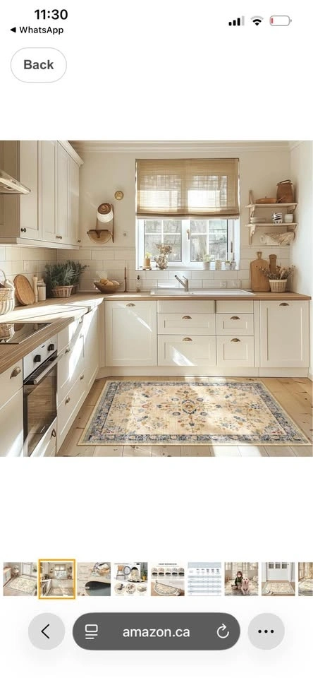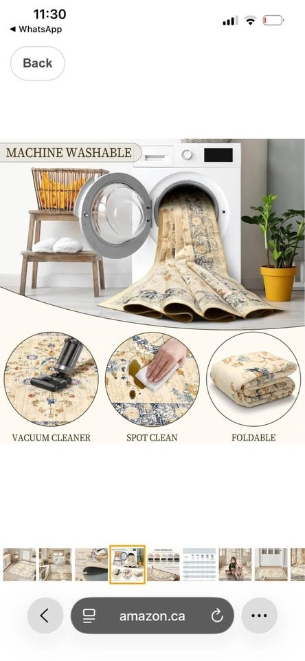 Vintage floral distress print pattern area rug. Measures 3x5 feet. Washable, non-slip, low-pile indoor carpet. Suitable for bedroom, living room, dining room, and entryway. Features beige, navy blue, and orange colors.