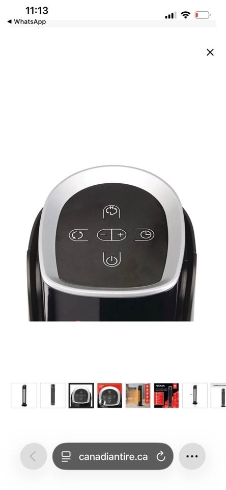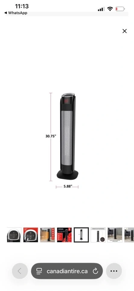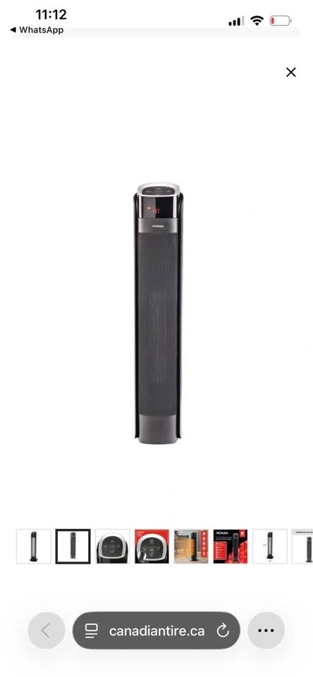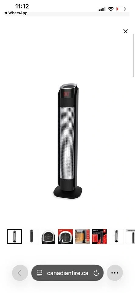 This NOMA oscillating tower ceramic heater is 30 inches tall and comes in black. It features a remote control and thermostat, with a powerful 1500W heating capacity. Feel free to message if you have any questions!