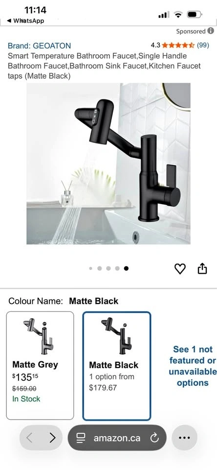 Buy & SellSmart Temperature Bathroom FaucetSmart Temperature Bathroom Faucet$99Single handle bathroom faucet, also suitable for a bathroom sink or kitchen. Matte black finish.WHERE TO MEETCheck LocationView MapSELLERverifiedJuneDonevan731 review0 chats·0 favorites·5 viewsSEND CHAT TO SELLERHi June! I’m interested in your listing.Hi June! I’m interested in your listing.Get the Karrot app to chatSign In to chat