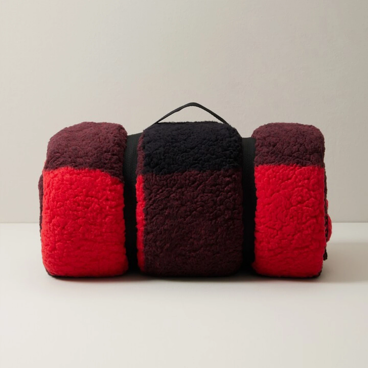 Cozy sherpa blanket with a classic buffalo check pattern. It's made of 100% polyester for a soft and warm feel. This blanket is perfect for snuggling up on the couch or adding extra warmth to your bed.
