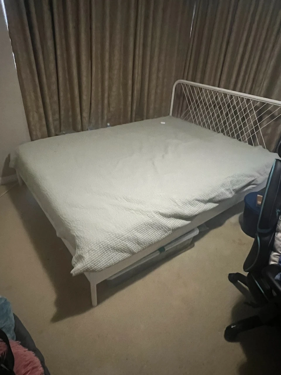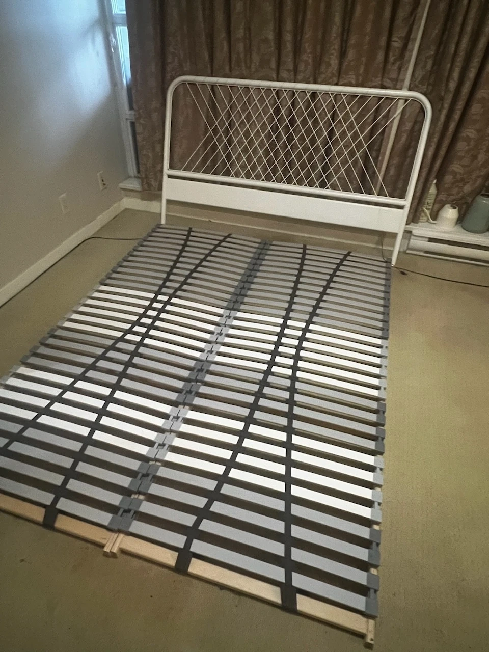 White Metal Bed Frame with Headboard and Slats