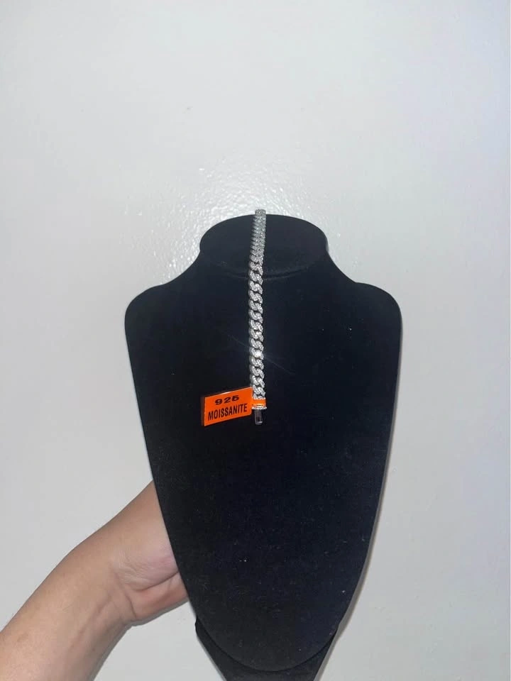 Miami Cuban bracelet, 7.5 inches long and 6mm thick. Features VVS Moissanite stones that are hand-set in solid 925 sterling silver with rhodium platinum plating. Perfect for everyday wear or special occasions. It looks luxurious, is eye-catching, and matches any outfit.