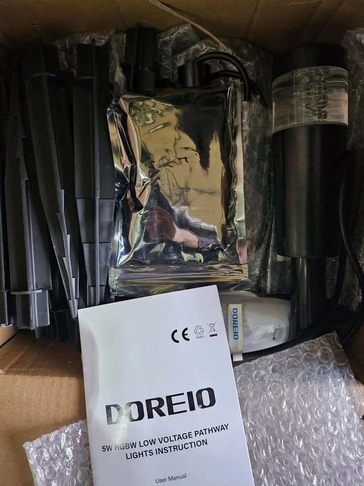 DOREIO 5W RGBW Low Voltage Landscape Pathway Lights with Connectors 12V. Outdoor color changing landscape lighting LED bollard path lights. Wired waterproof walkway lights for garden yard. Set of 12.