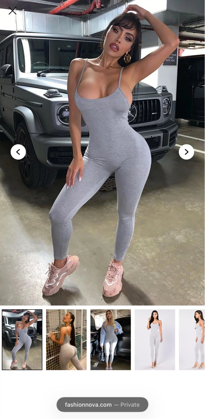 This grey ribbed bodysuit jumpsuit features spaghetti straps and a full-length leg. It's made from a stretchy material for a comfortable fit. This piece is super versatile for layering or wearing on its own! Fashion Nova size Medium.