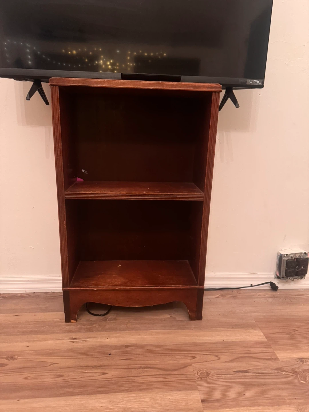 Mid-Century Modern Wood TV Stand with Sliding Doors