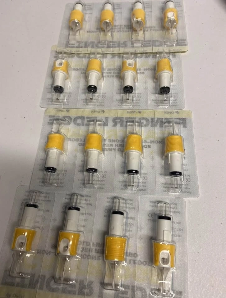New Finger Ledge cartridge tattoo needles available. These are non-slip silicone finger ledge with soft finger rest combo for firm hold. EO sterile and single use. Exp date 2027/04. Great for your tattoo setup.