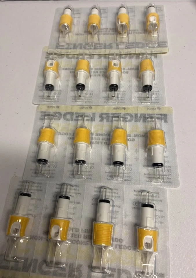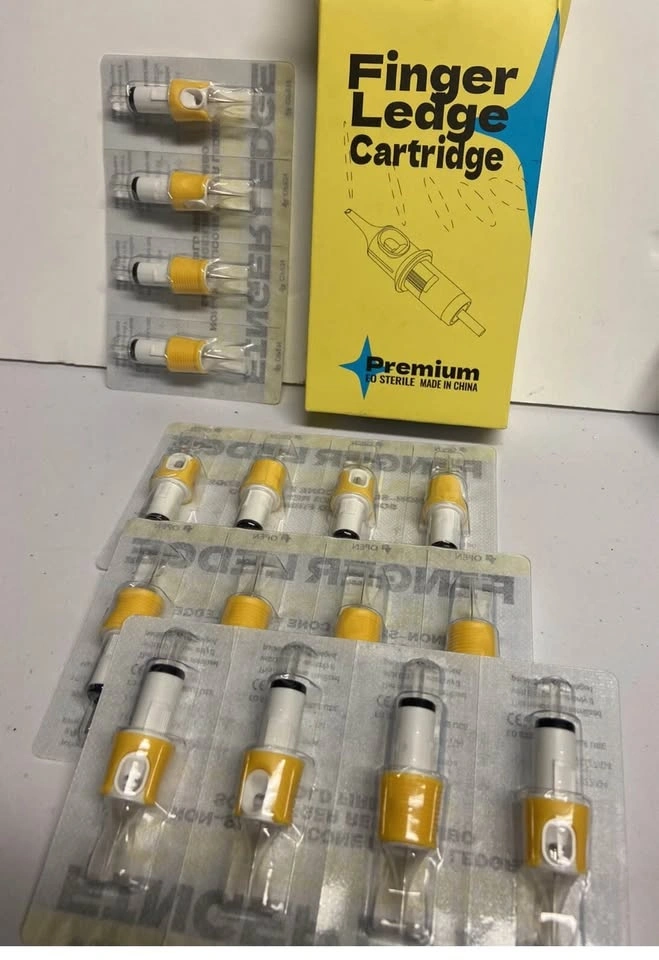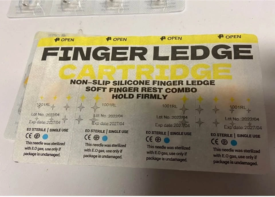 New Finger Ledge cartridge tattoo needles available. These are non-slip silicone finger ledge with soft finger rest combo for firm hold. EO sterile and single use. Exp date 2027/04. Great for your tattoo setup.
