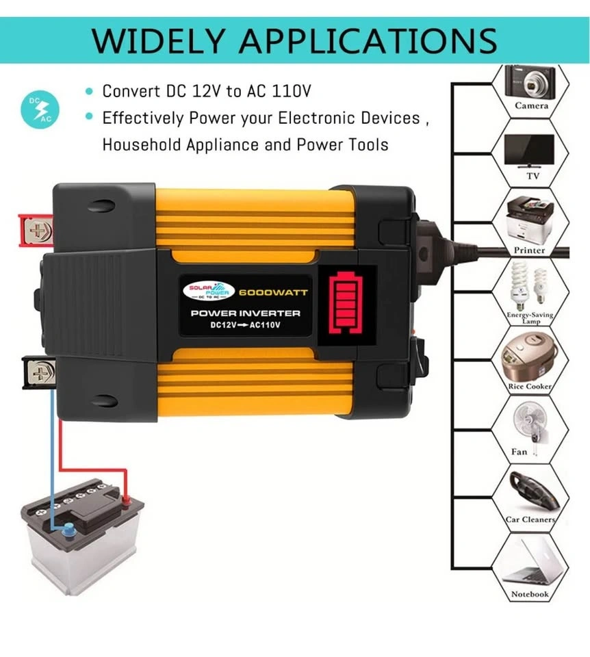 6000W Car Power Inverter 12V DC to 110V AC Sine Wave Converter