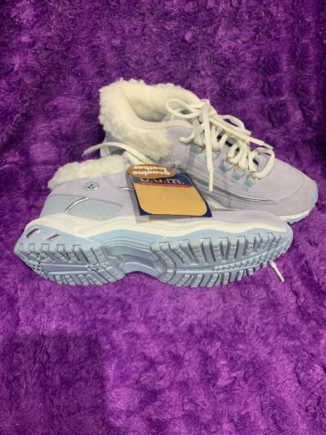 These B.U.M. Equipment sneakers are designed with a comfortable fur lining for warmth. They feature a suede-like exterior and lace-up closure. Perfect for keeping your feet cozy during cooler weather!