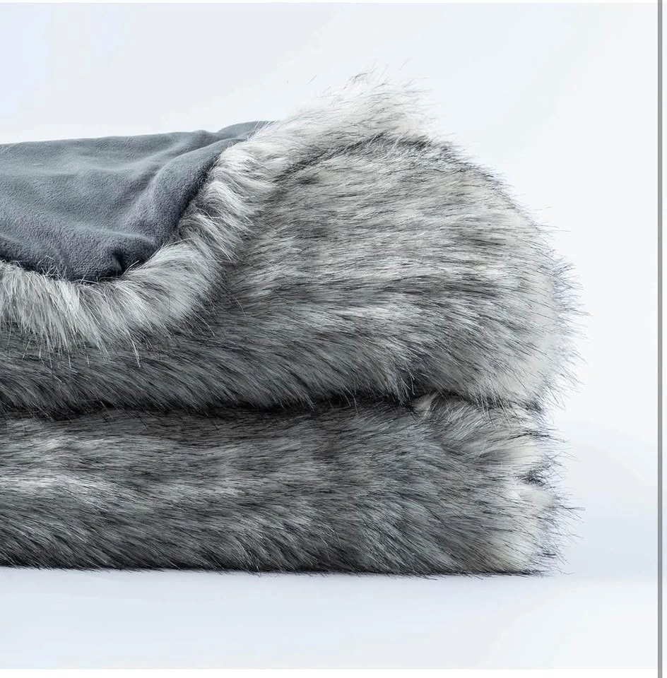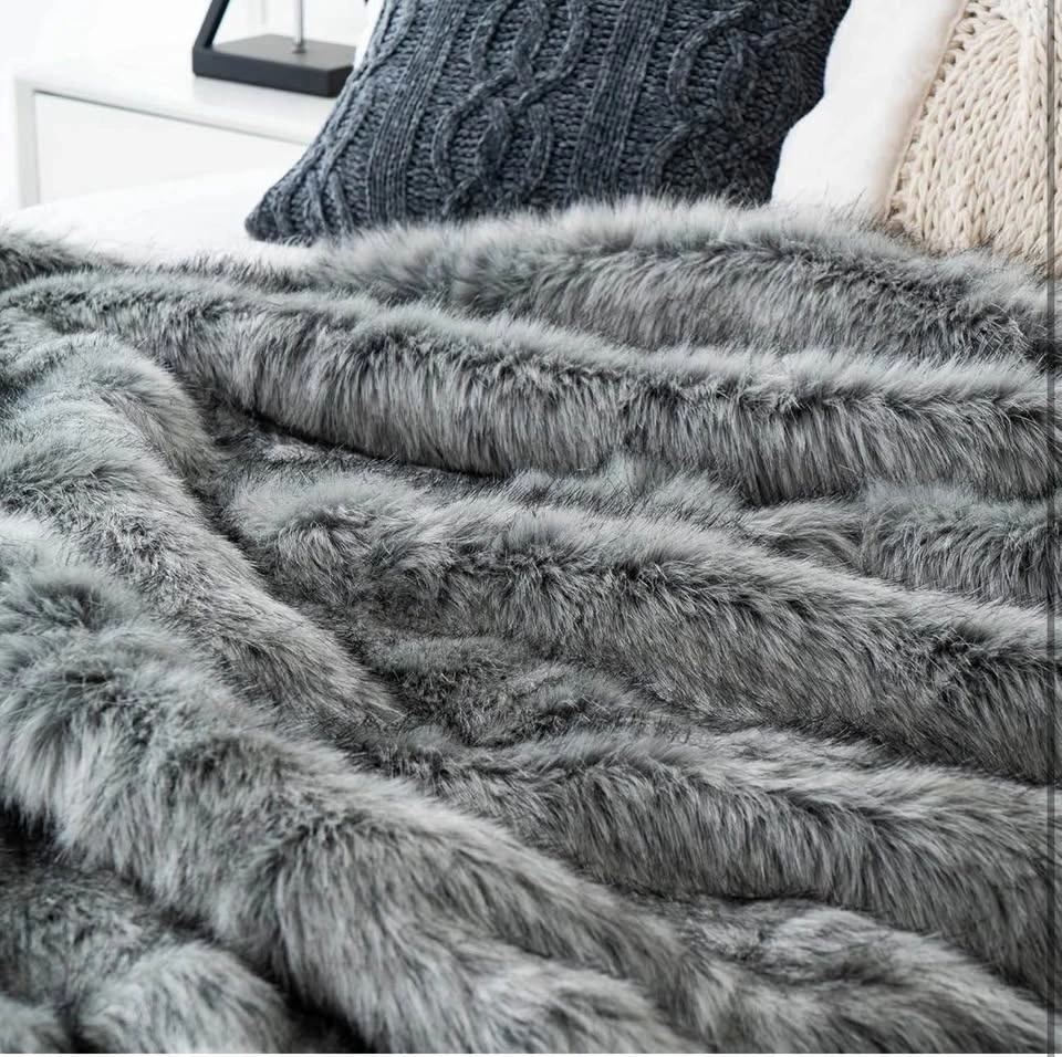Silver Grey Faux Fur Throw Blanket for Couch, Bed, Fake Fur Blan