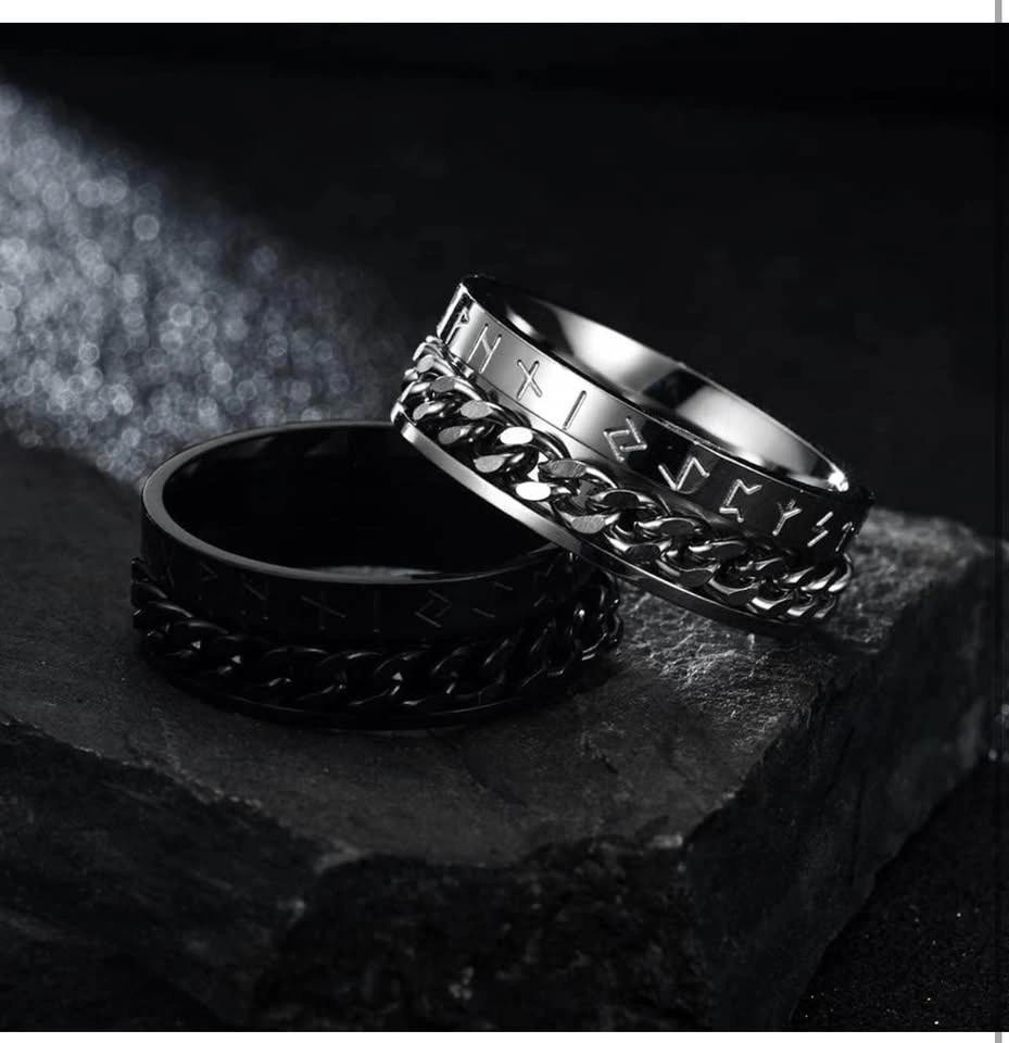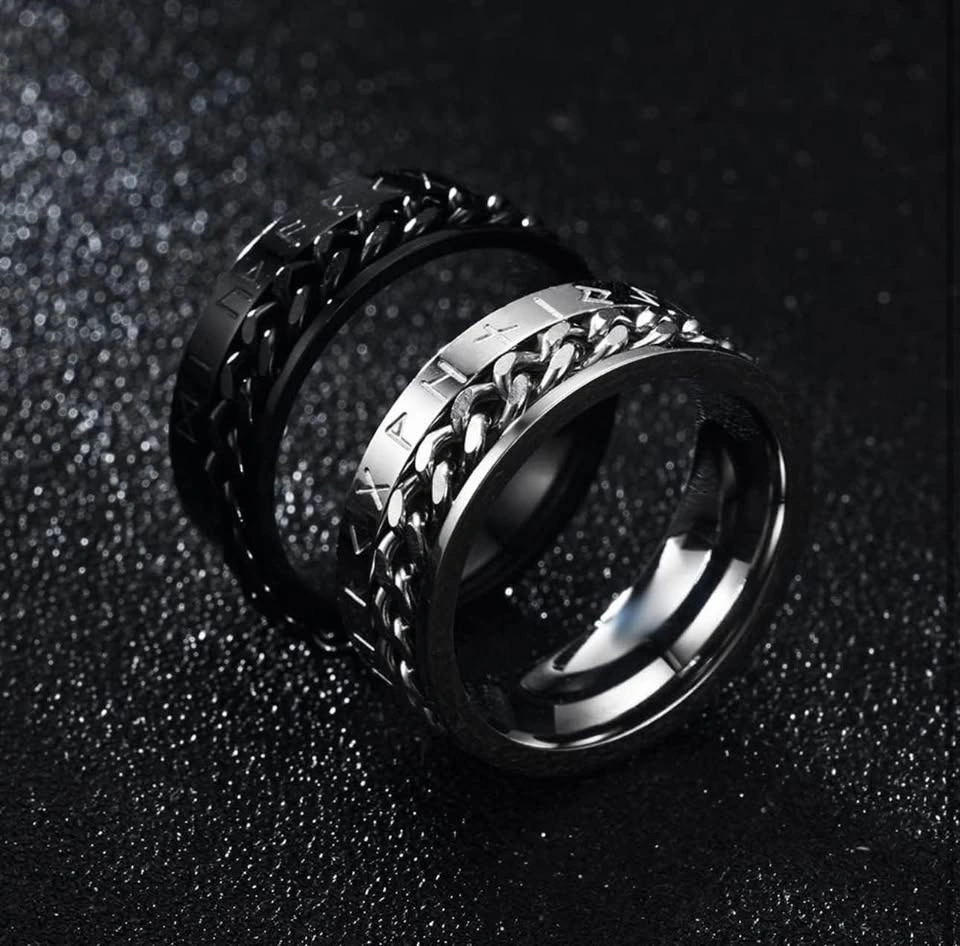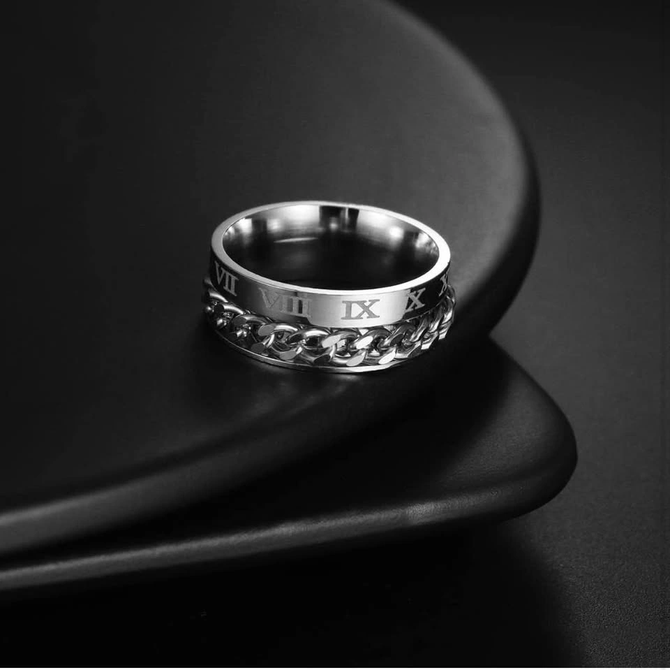 Punk Roman Numerals Chain Rotatable Ring - Stainless Steel
