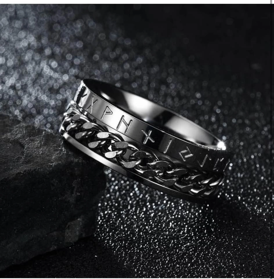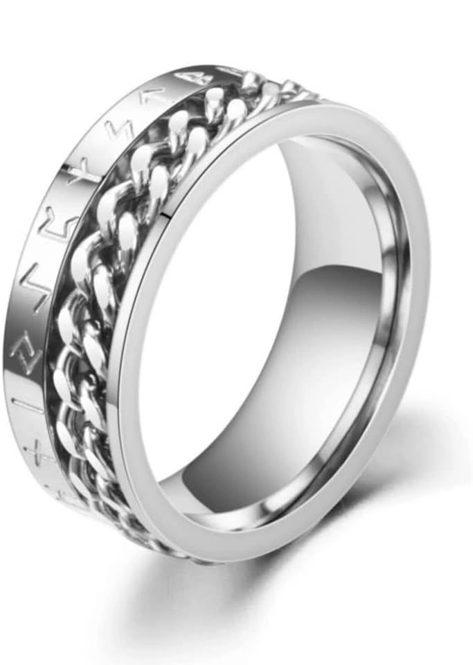 Punk Roman Numerals Chain Rotatable Ring - Stainless Steel