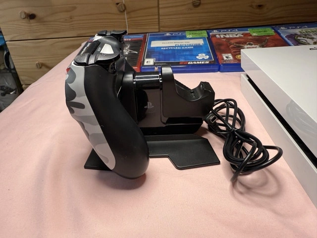 Selling my used white Limited Edition PlayStation 4 with a 500GB hard drive. It comes with a camouflage controller and a dual controller charging dock! Also included are 10 games, including Marvel's Spider-Man and The Last of Us Remastered! This PS4 set is refurbished and ready for a new home. Asking $220. If the ad is up, it's available!