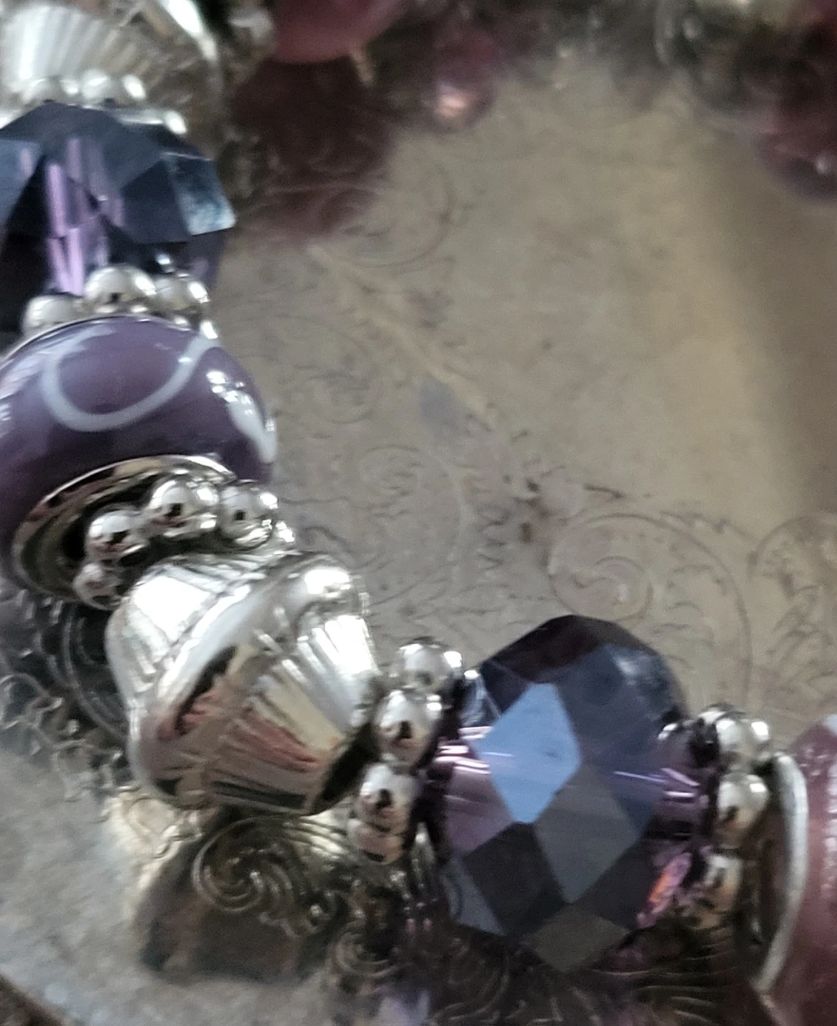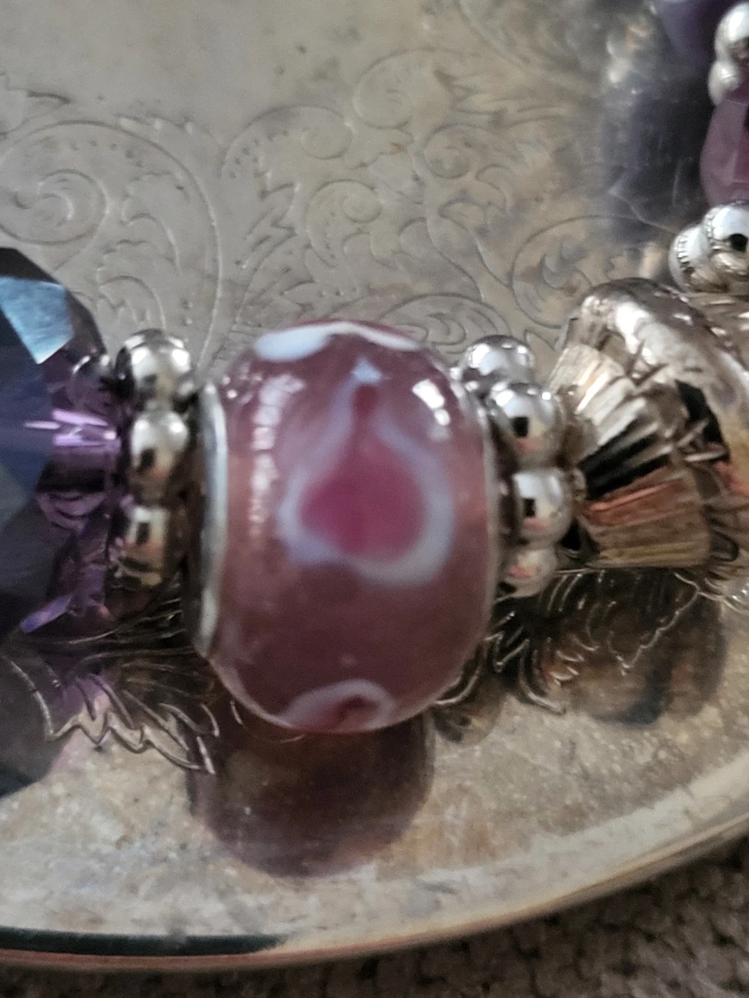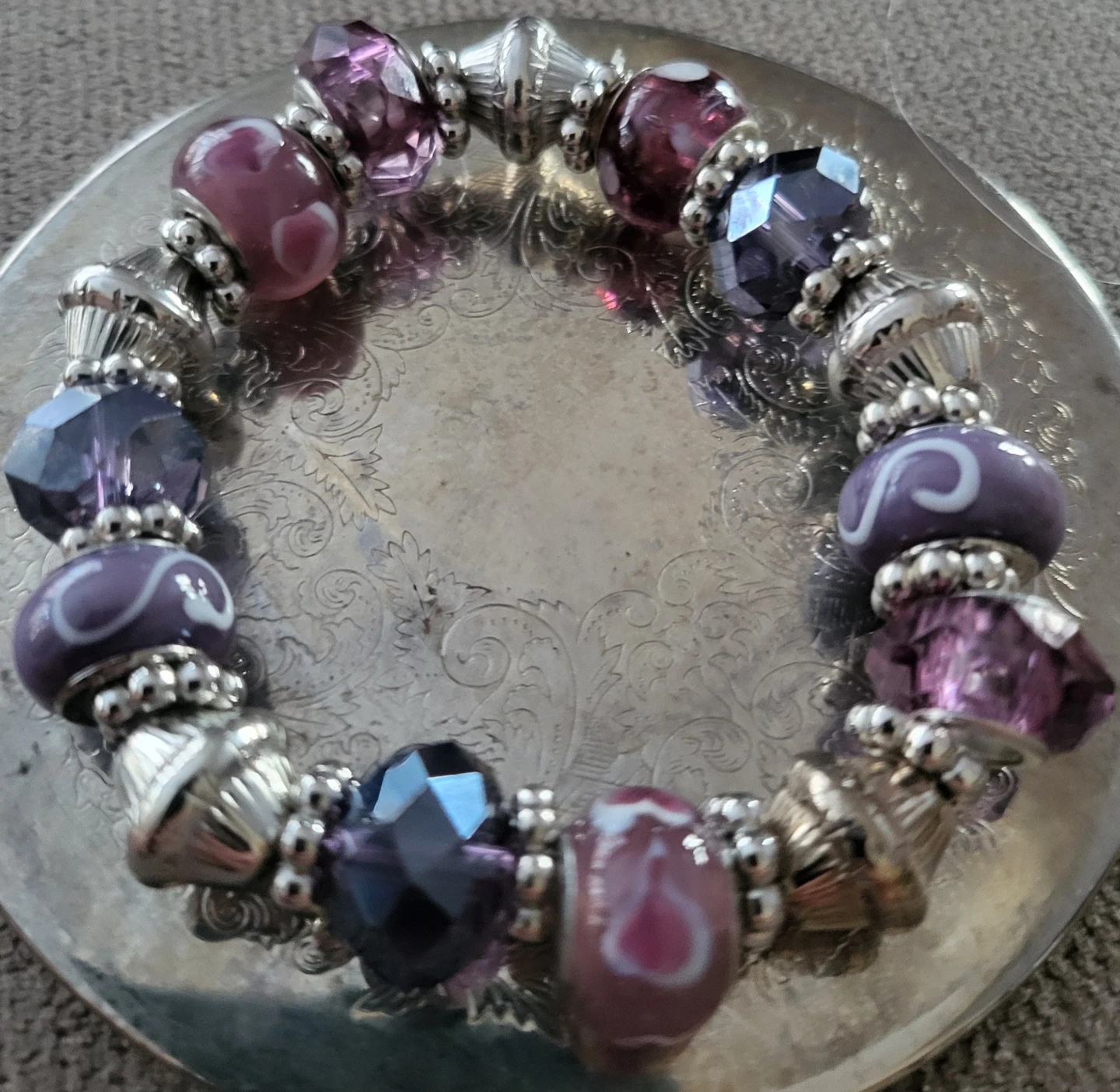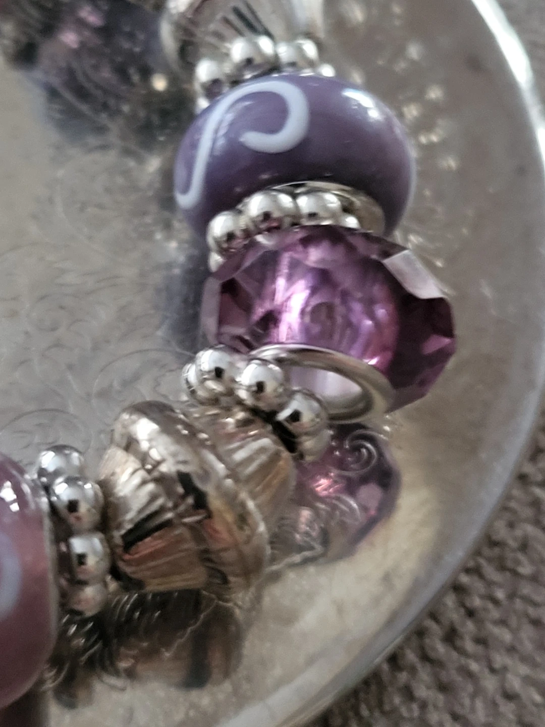 Purple Charm Bracelet with Crystal and Glass Beads