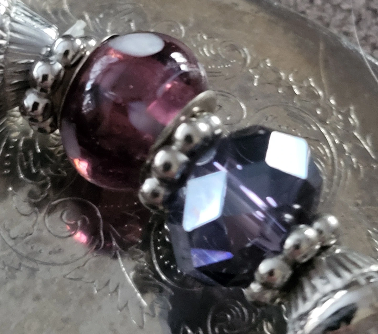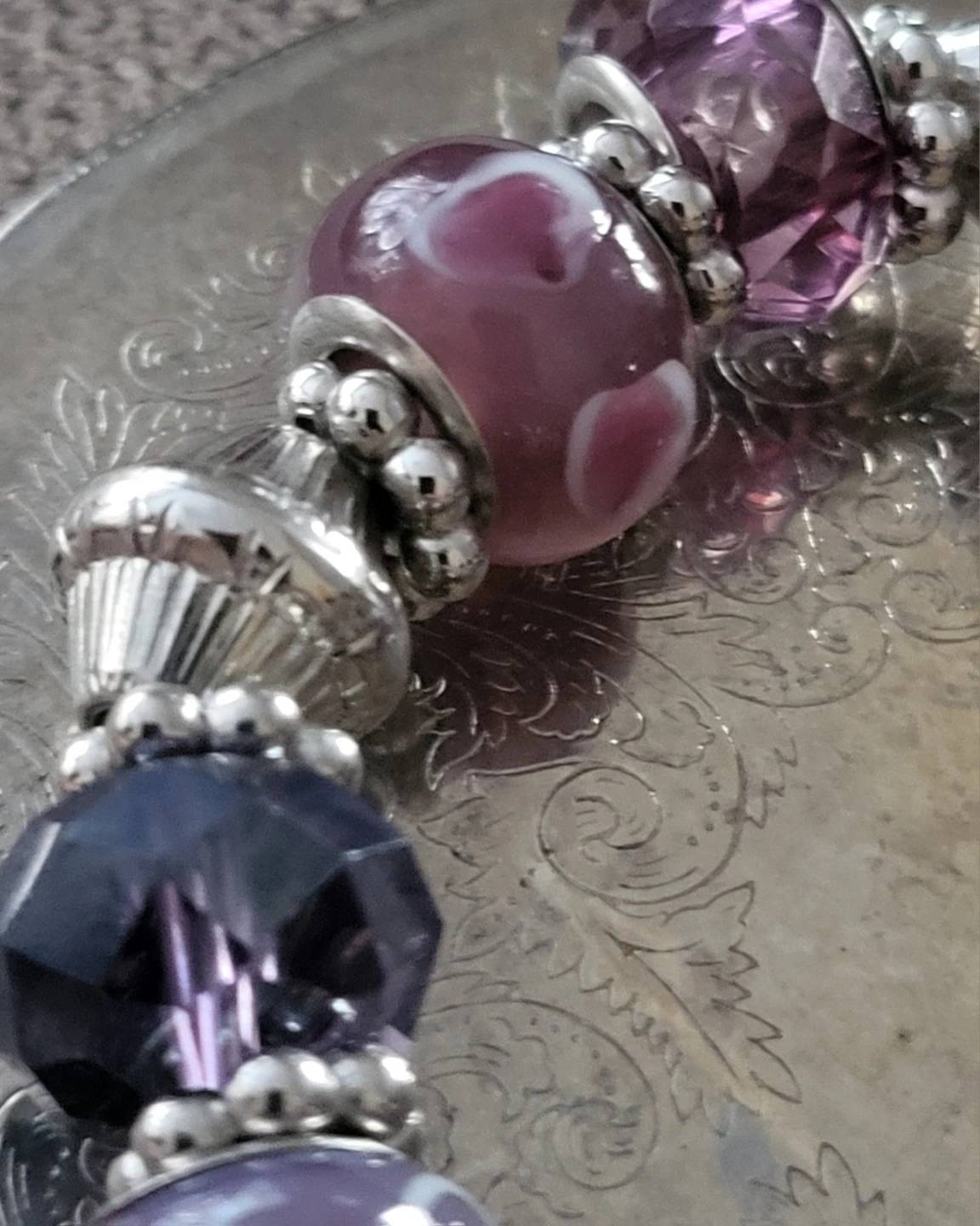 Purple Charm Bracelet with Crystal and Glass Beads