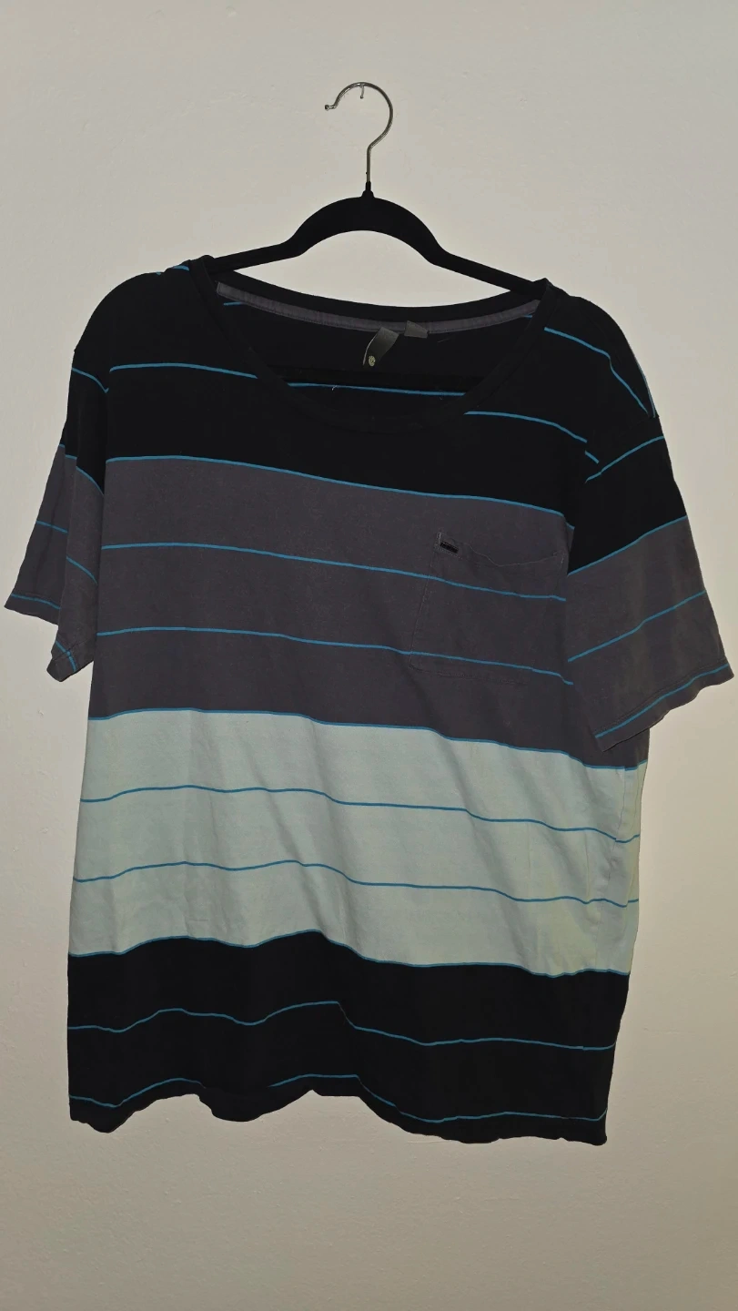 A classic Element t-shirt with horizontal stripes and a chest pocket. It's made from 100% cotton. This tee is great for casual wear.