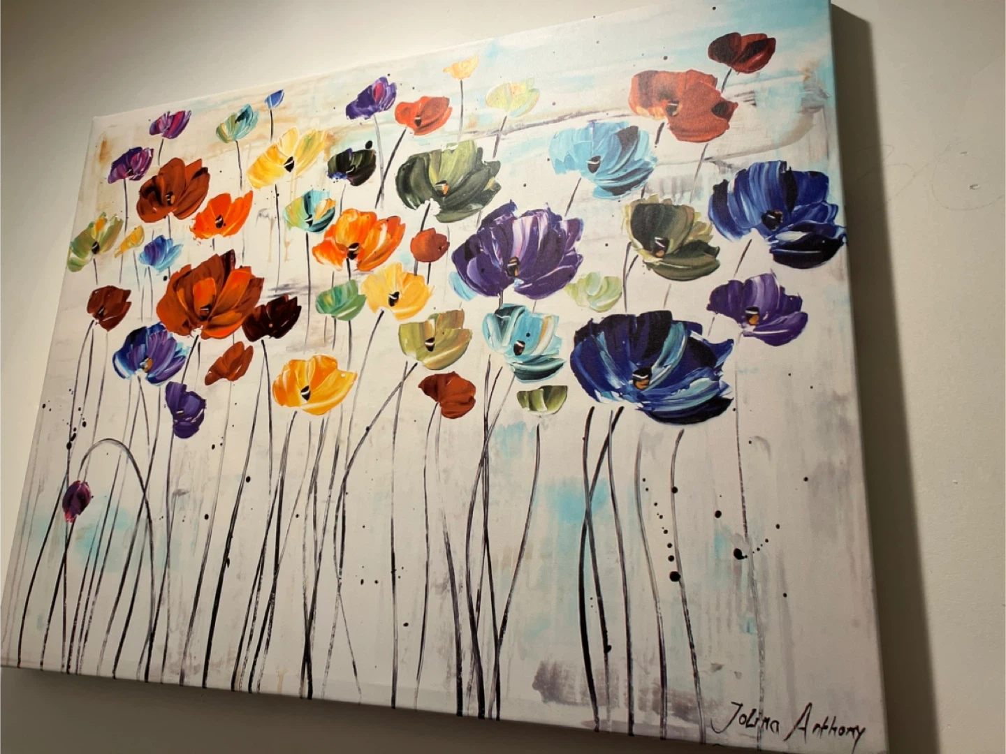Buy & SellJolina Anthony Floral Canvas Wall ArtJolina Anthony Floral Canvas Wall Art$23Canvas art featuring a vibrant abstract floral design with multiple colors. Signed by the artist, Jolina Anthony. Ready to hang. Ready for pick upConditionGoodDimensions32x24WHERE TO MEETCheck LocationView MapSELLERverifiedBrianBedford-Stuyvesant1013 reviews1 chats·2 favorites·38 viewsSEND CHAT TO SELLERHi Brian! I’m interested in your listing.Hi Brian! I’m interested in your listing.Get the Karrot app to chatSign In to chat