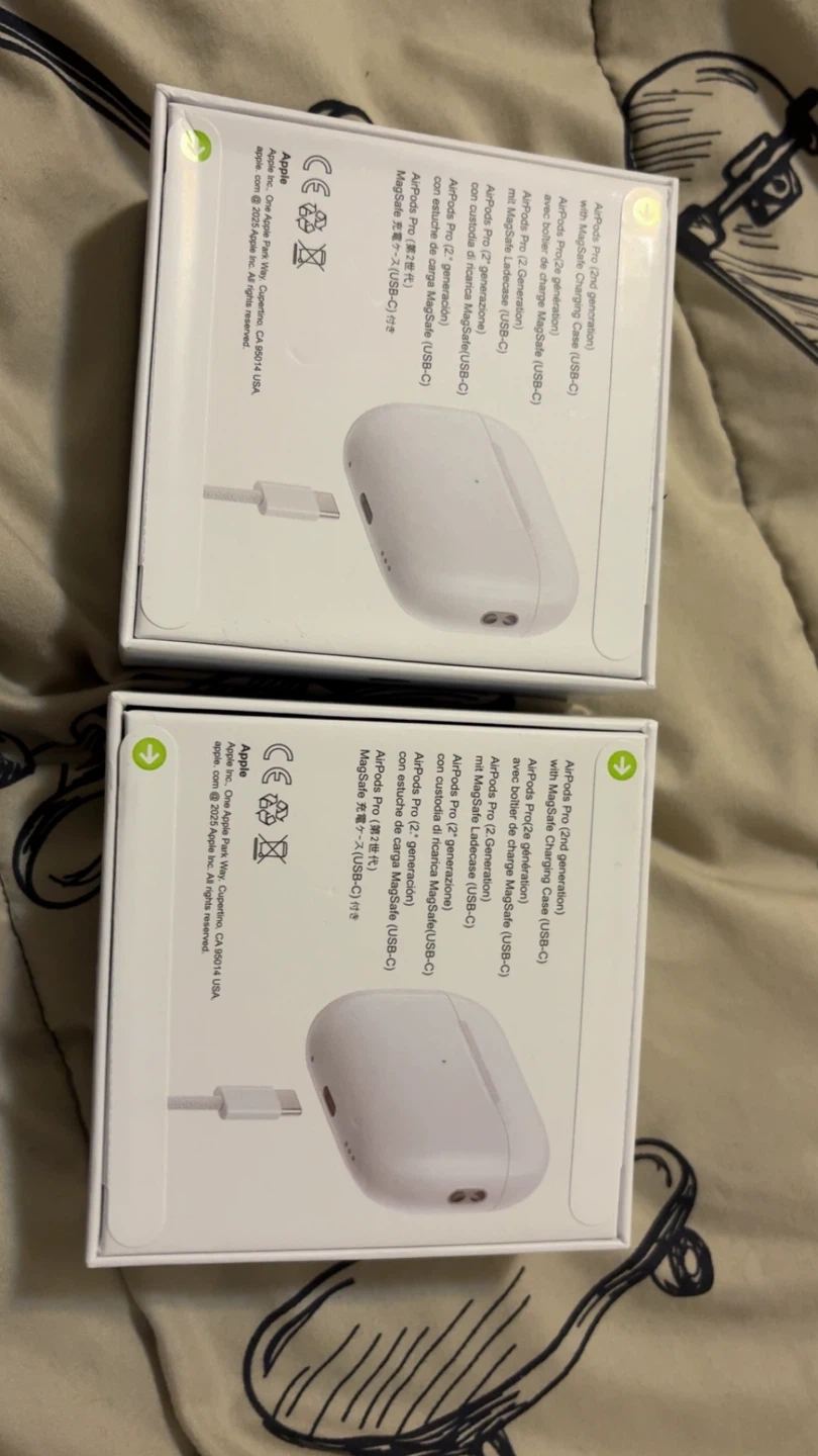 These are the Apple AirPods Pro (2nd generation). They come with a MagSafe Charging Case and a USB-C cable. It's a complete set.