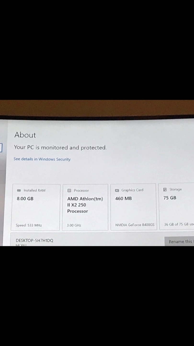 This is a desktop computer. It has 8.00 GB of RAM and a 75 GB storage drive. The processor is an AMD Athlon II X2 250. A keyboard is also included. This PC is great for everyday tasks!