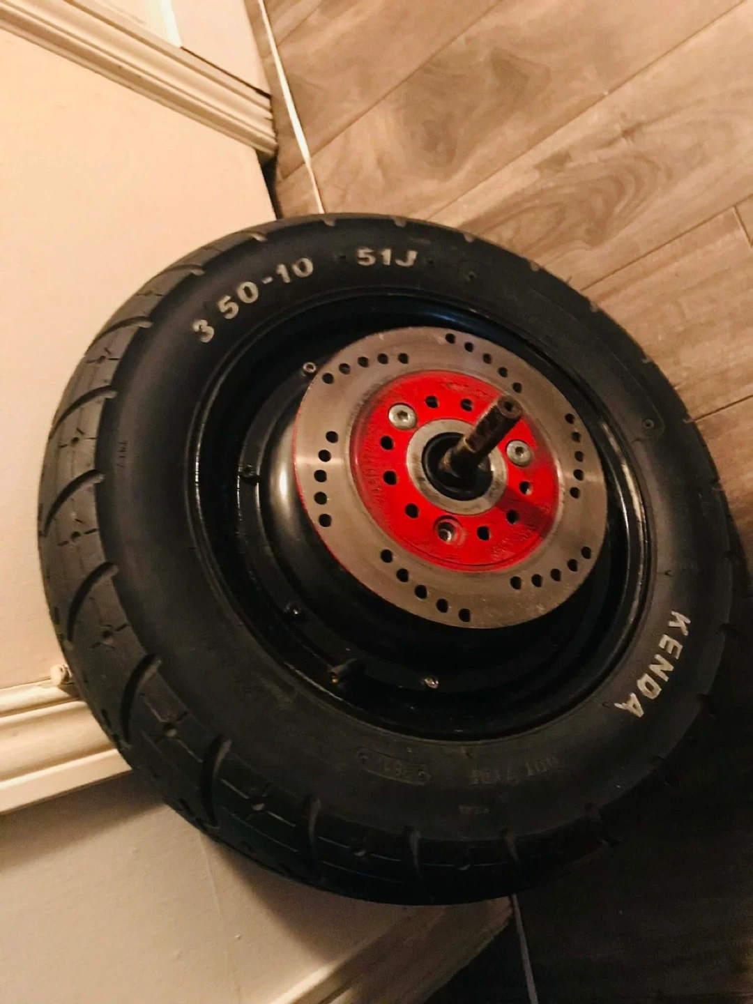 This is a Kenda 3.50-10 51J electric wheel hub motor.