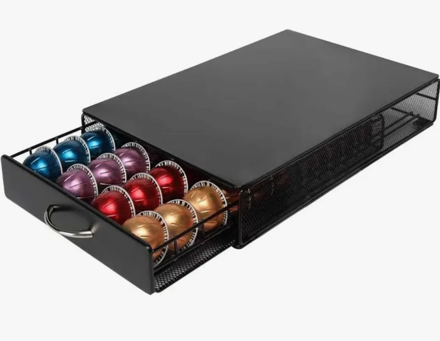 FlagShip Vertuo Pod Holder Storage Drawer for Nespresso Vertuo Capsule Organizer Drawer Tray with Mesh Shelves for Nespresso Vertuo Holder Black Metal (40 Pods Capacity)
