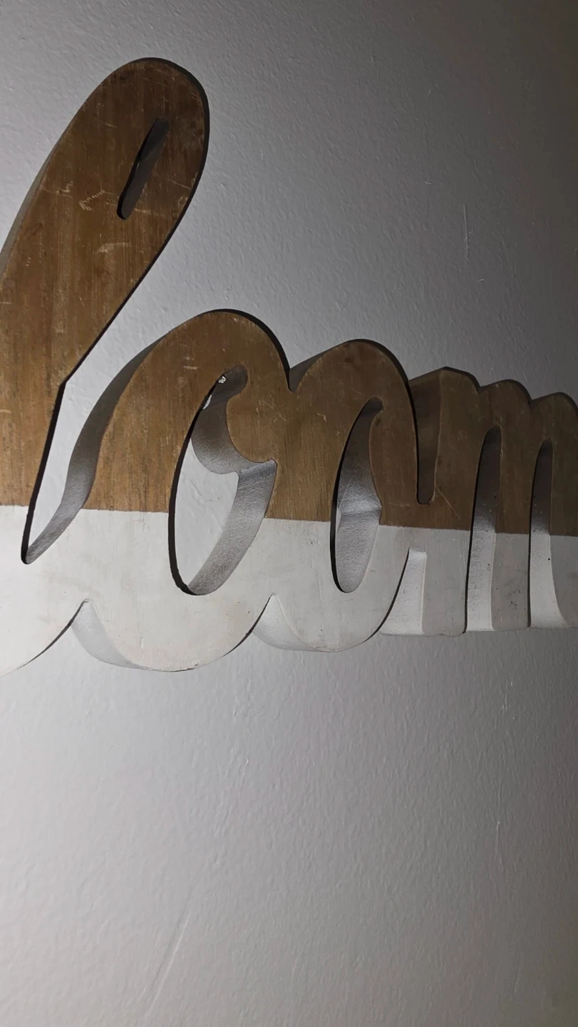 This wooden sign spells out "welcome" in a lovely cursive font. It's half natural wood finish and half painted white, giving it a rustic yet modern look. It's perfect for hanging on a wall near your entryway or in any room you'd like to add a welcoming touch!