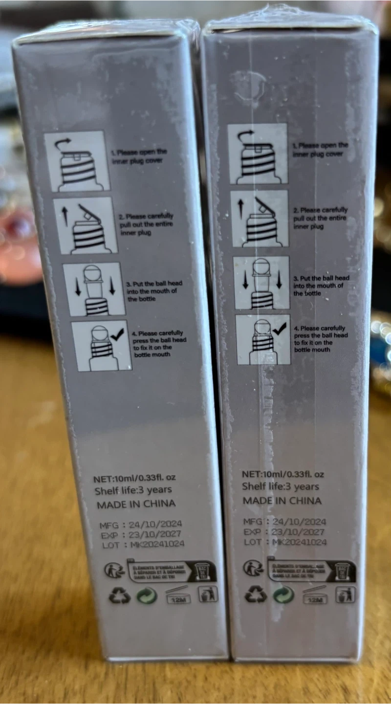 This is a 10ml bottle of TASKEEN Caramel Cascade perfume. It's made in China and has a shelf life of 3 years. The manufacturing date is October 24, 2024, and it expires on October 23, 2027.