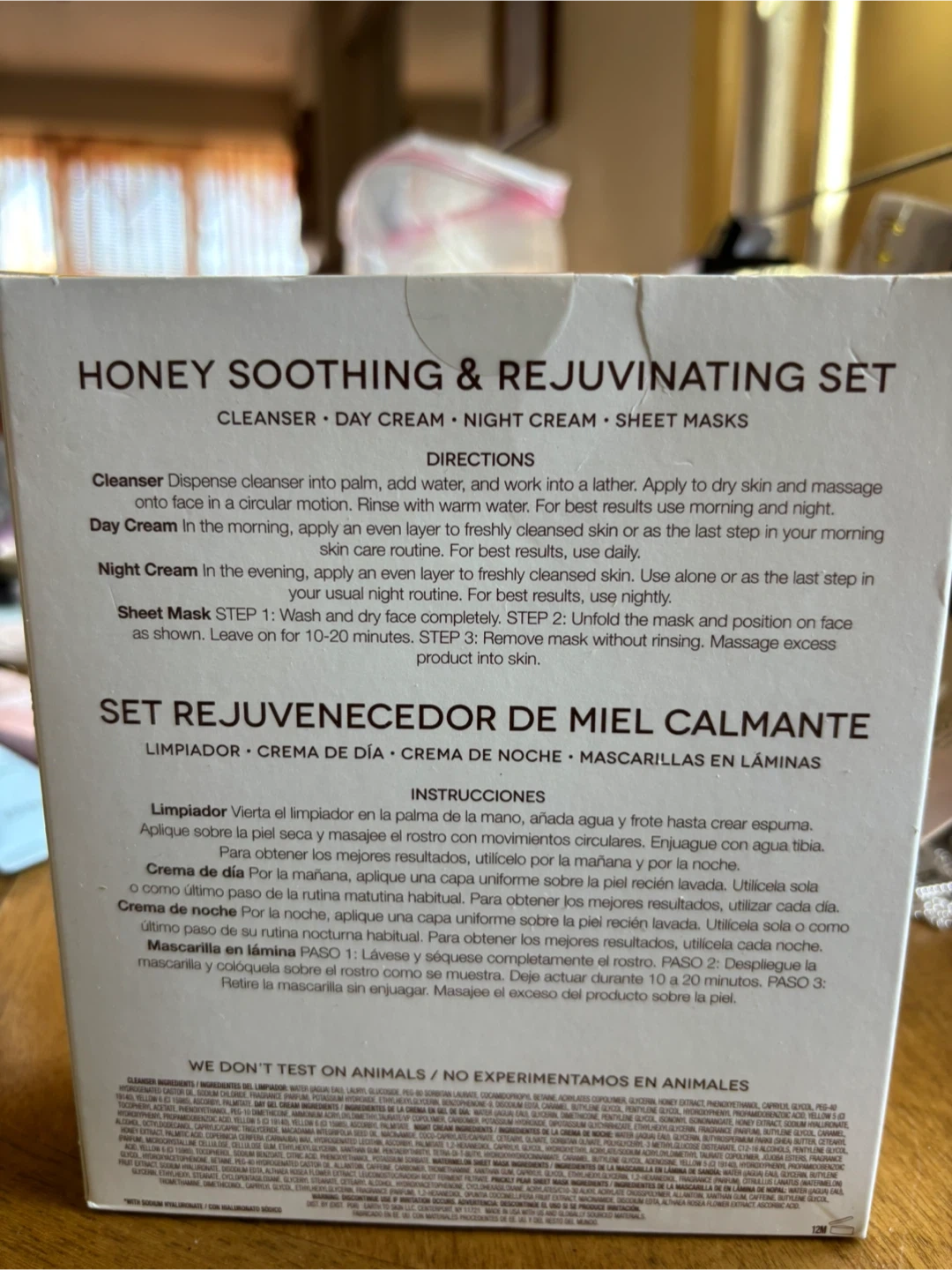 This set includes two honey facial cleansers, a day cream, and two sheet masks. Cleansers are 2.0 fl. oz. / 60 ml each. Day cream is 0.5 fl. oz. / 14.7 ml. Sheet masks are net wt. 1 oz. / 28 g total. It's a great way to try out these products!