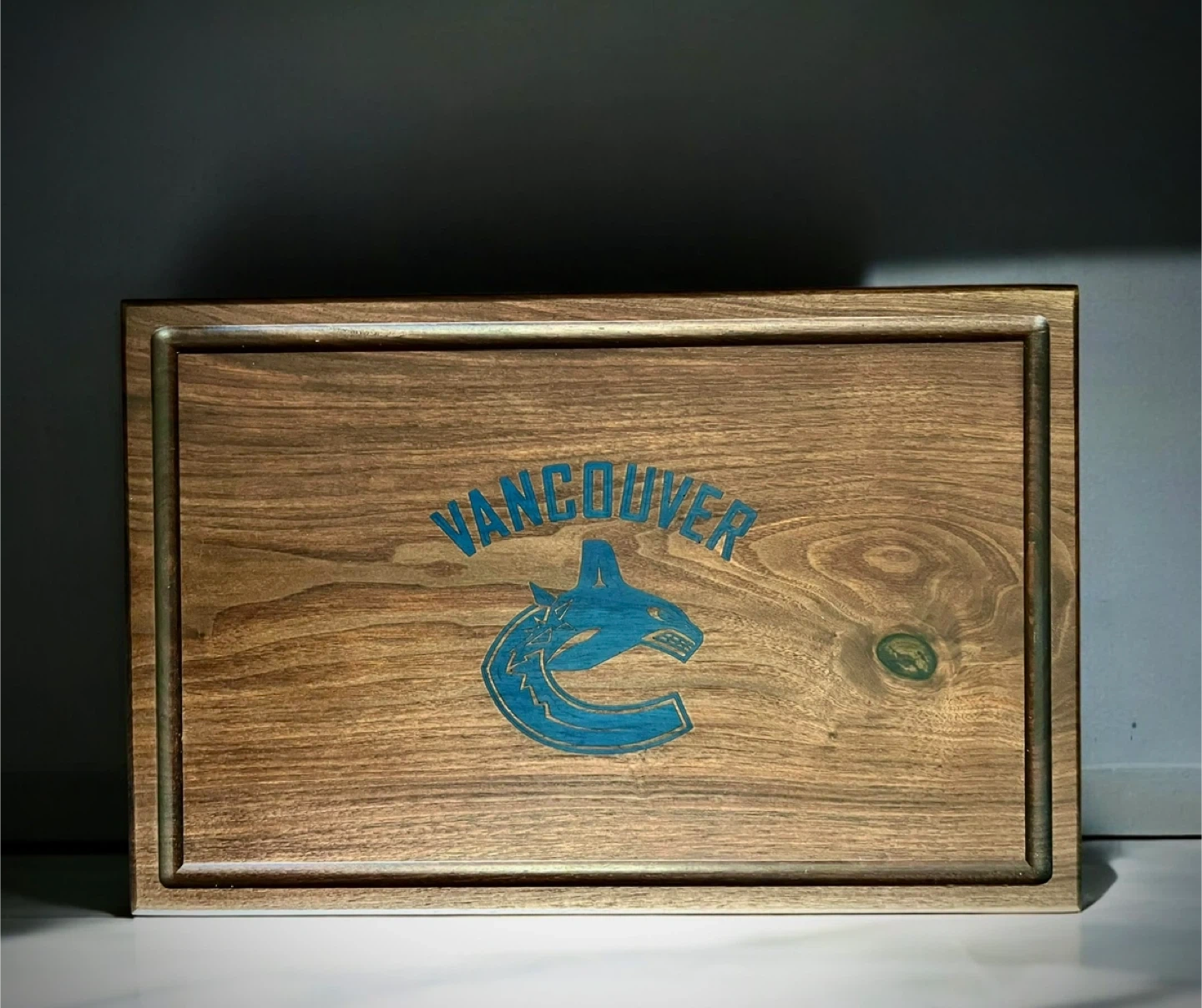 Selling a selection of black walnut cutting boards, each featuring a different NHL team logo. Show your team spirit while prepping your favourite meals! They are brand new condition and ready to go!