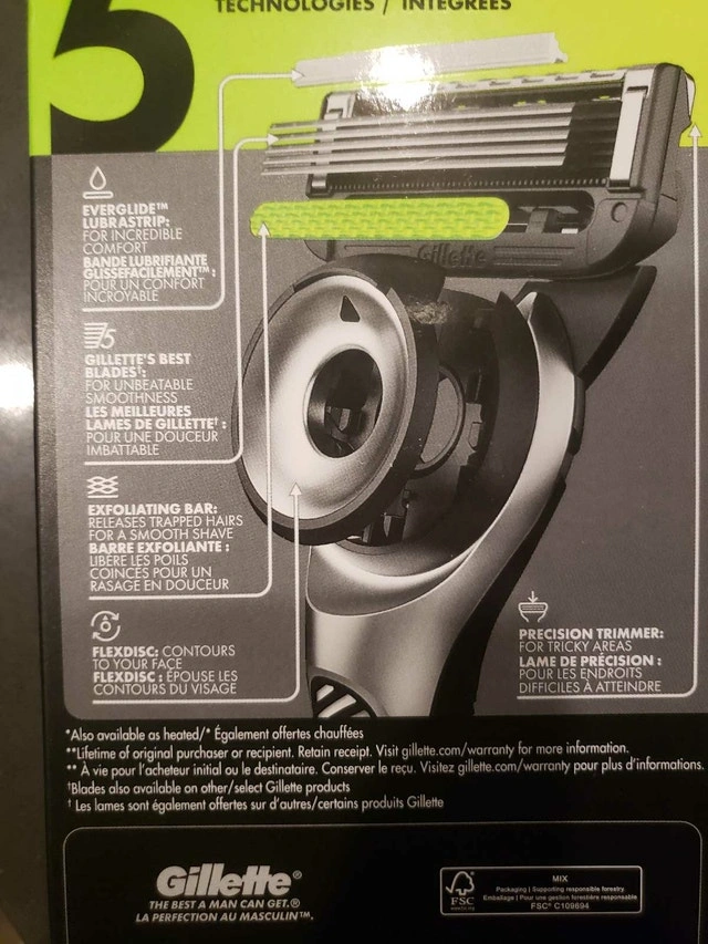 New Gillette box with 6 razors. Purchased for $45.99 plus tax. Selling it at about half the price for Gillette products. Let me know if you'd be interested in purchasing.