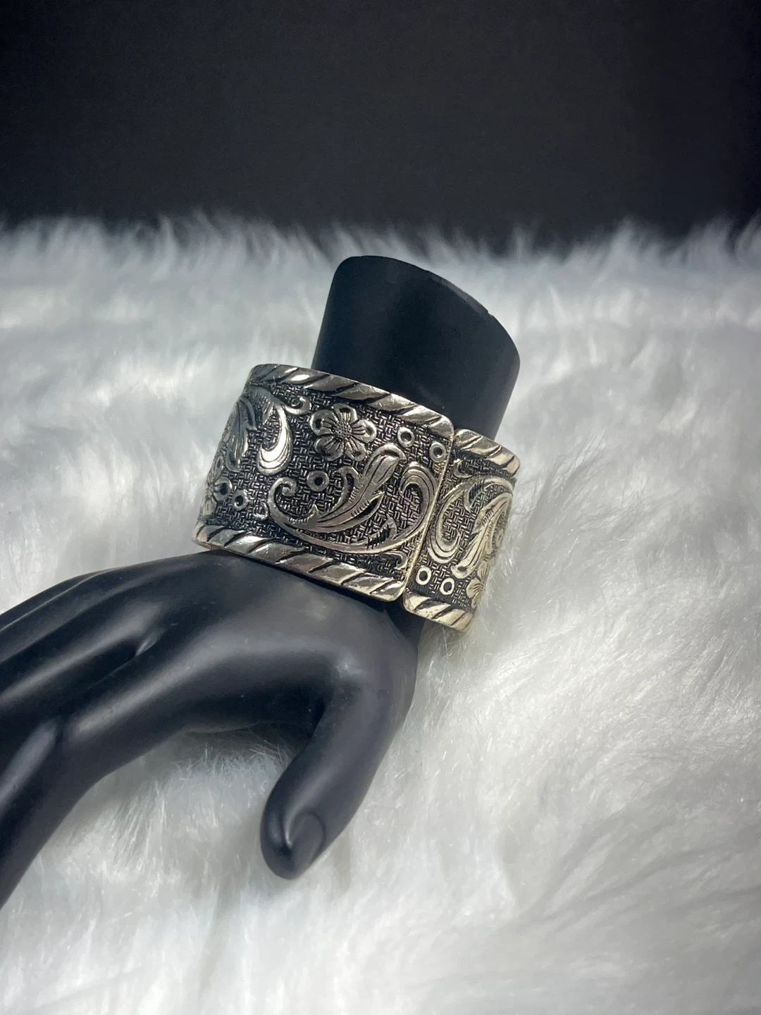 Vintage Floral Engraved Cuff Bracelet