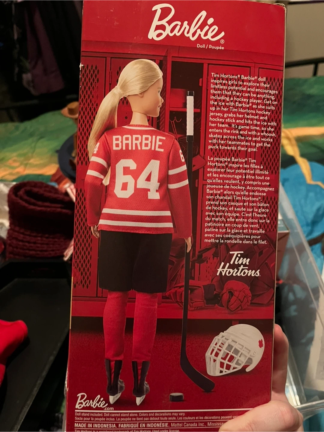 Buy & SellTim Hortons Barbie Hockey Player Doll Blonde Skates Canada 2020Tim Hortons Barbie Hockey Player Doll Blonde Skates Canada 2020$75This Barbie doll celebrates hockey! It's dressed in a Tim Hortons-themed hockey jersey and accessories. The doll comes in its original packaging.WHERE TO MEETCheck LocationView MapSELLERverifiedSamanthaLakeshore17913 reviews0 chats·0 favorites·24 viewsSEND CHAT TO SELLERHi Samantha! I’m interested in your listing.Hi Samantha! I’m interested in your listing.Get the Karrot app to chatSign In to chat
