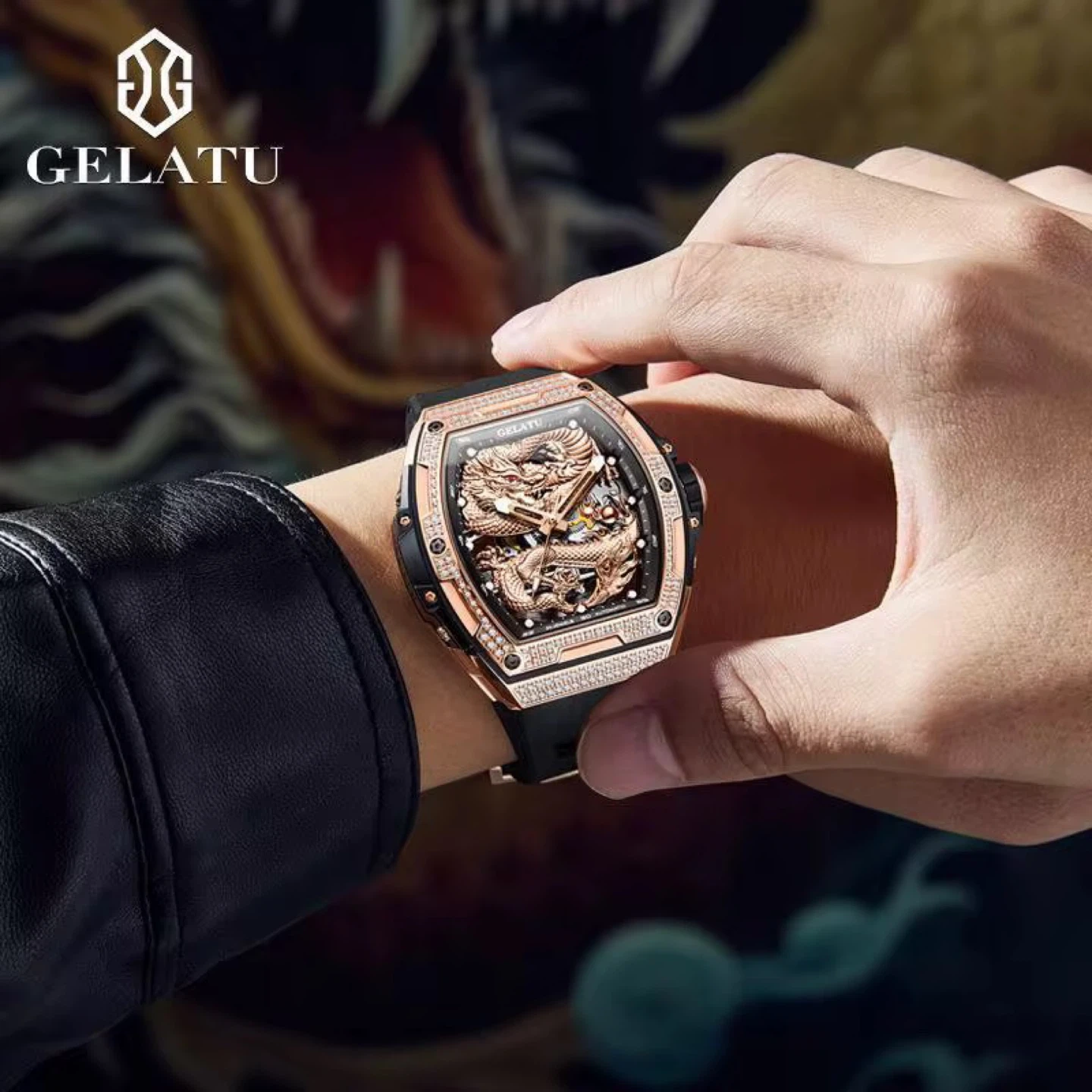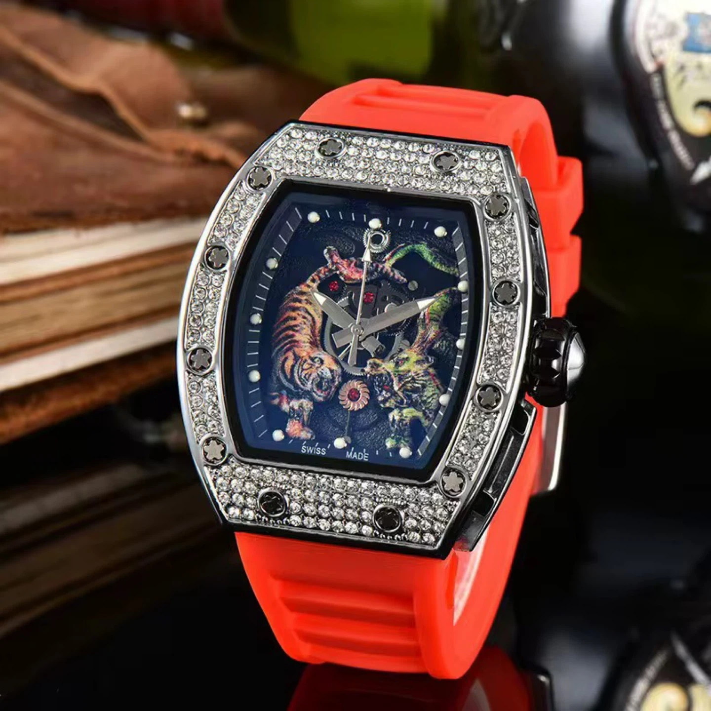 This stylish men's quartz watch features a dazzling crystal-embellished bezel and a unique dial with a tiger and dragon design. It comes with a comfortable silicone strap in a choice of colours. It's designed for everyday wear.