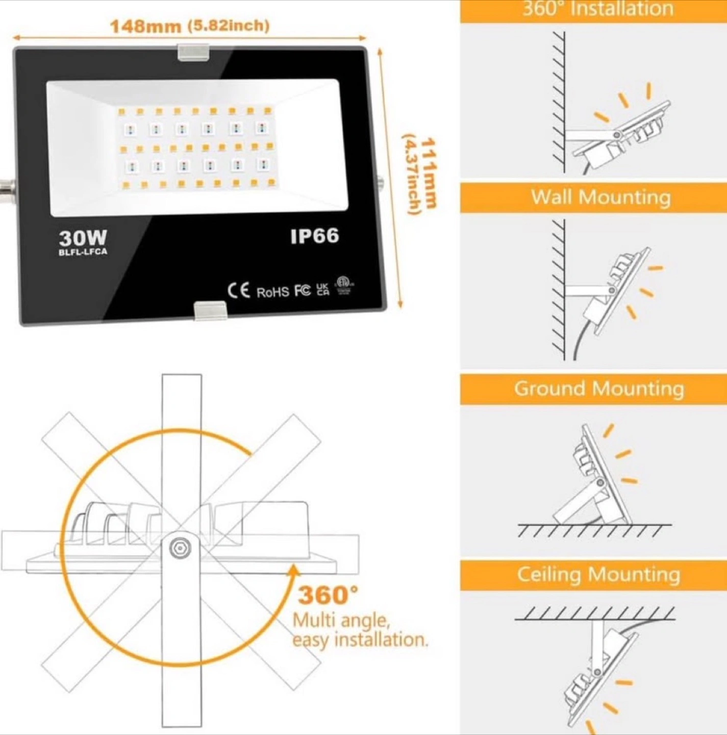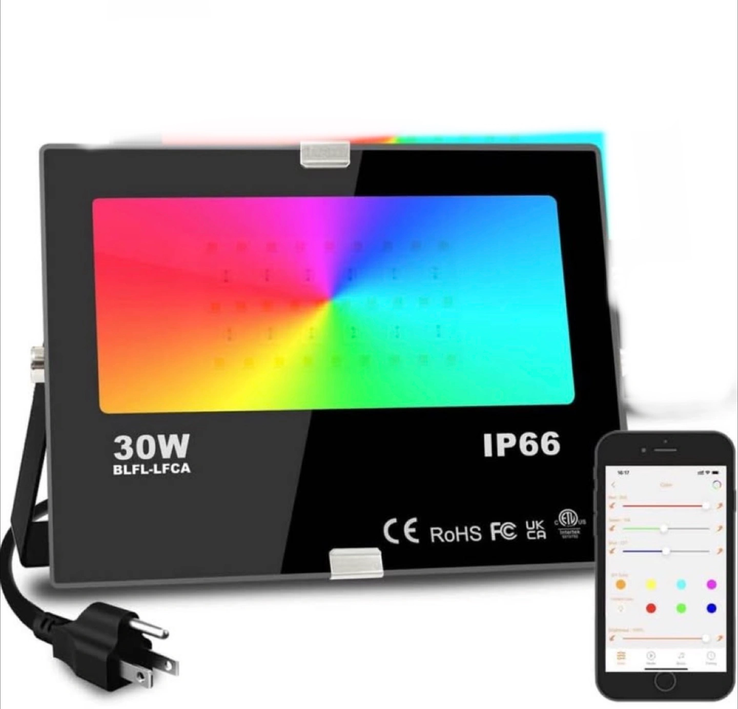 Led Flood Light 30W, 300W Equivalent 3000 LM Outdoor Color Changing Led Stage Landscape Lights, Bluetooth RGBW Smart Floodlights 2700K & 16 Million Colors&Timing& Music Sync, IP66, US 3-Plug