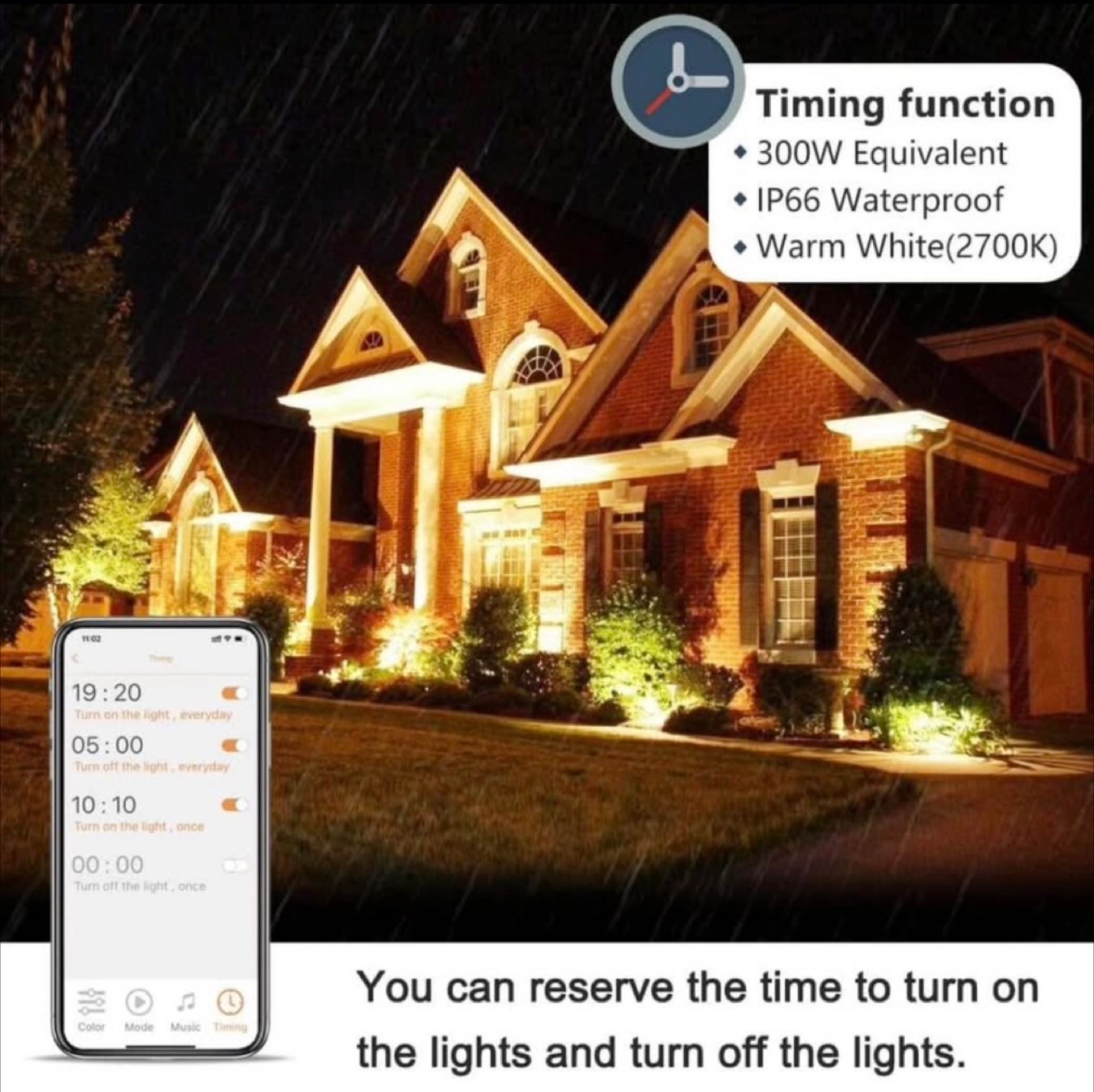 Led Flood Light 30W, 300W Equivalent 3000 LM Outdoor Color Changing Led Stage Landscape Lights, Bluetooth RGBW Smart Floodlights 2700K & 16 Million Colors&Timing& Music Sync, IP66, US 3-Plug
