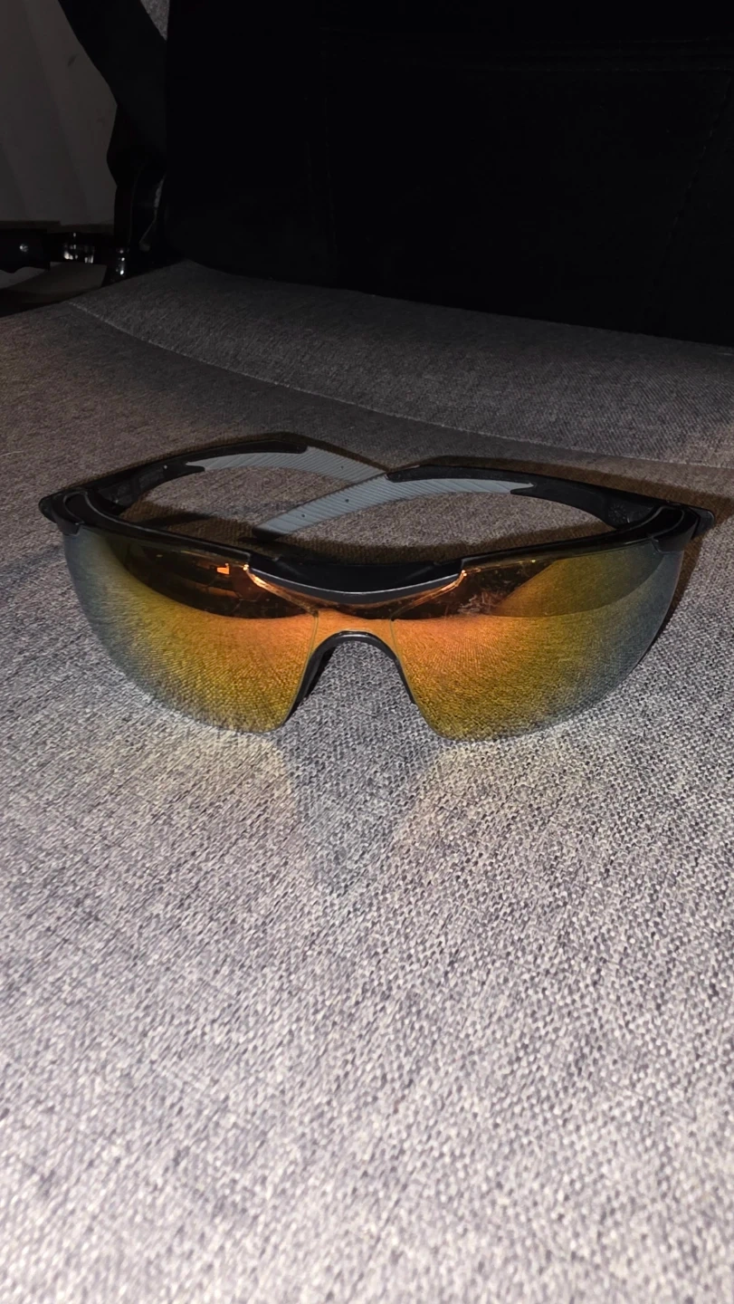 Dakota sport sunglasses with tinted lenses. These shades feature a durable black frame with grey accents on the arms. They offer a widely adjustable secure fit for comfortable heavy duty use on the job site as well as a mirrored lens for UV Protection