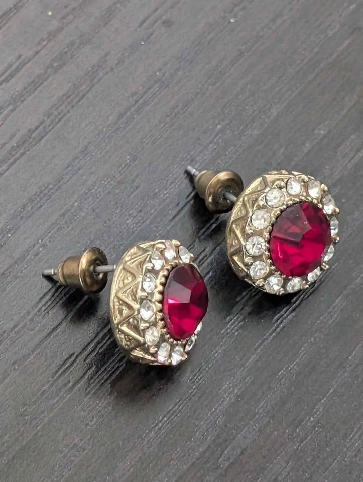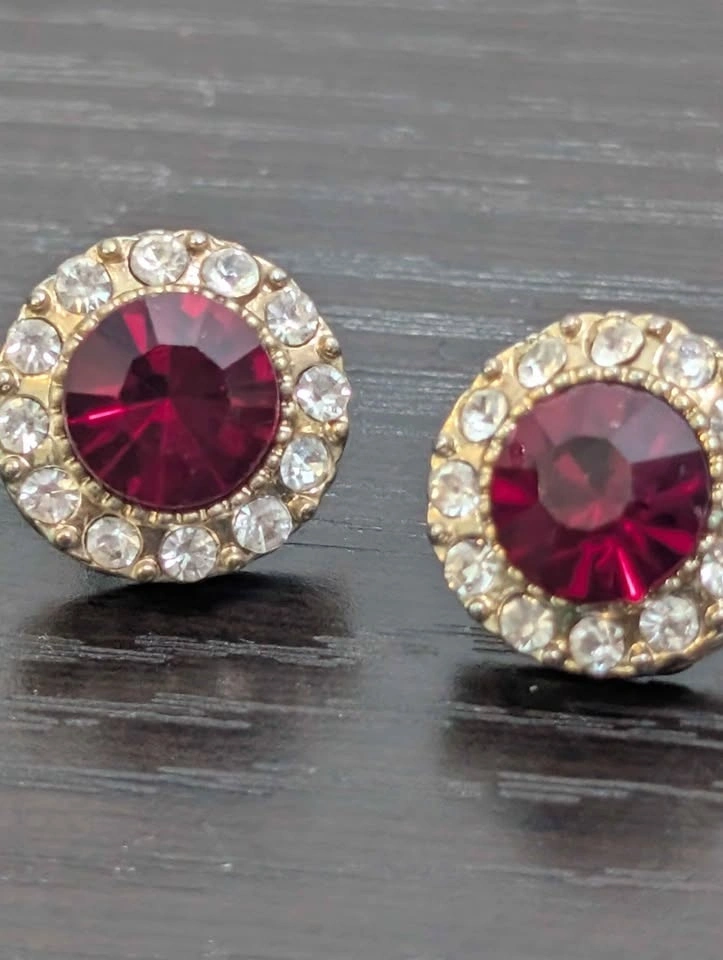 Ruby gem & diamond earrings from Joe Fresh, purchased several years ago. This style is likely discontinued. I've only worn them about 2 or 3 times and don't reach for them anymore. Please have a look at my other listings. Pickup is near Yonge & Eglinton.