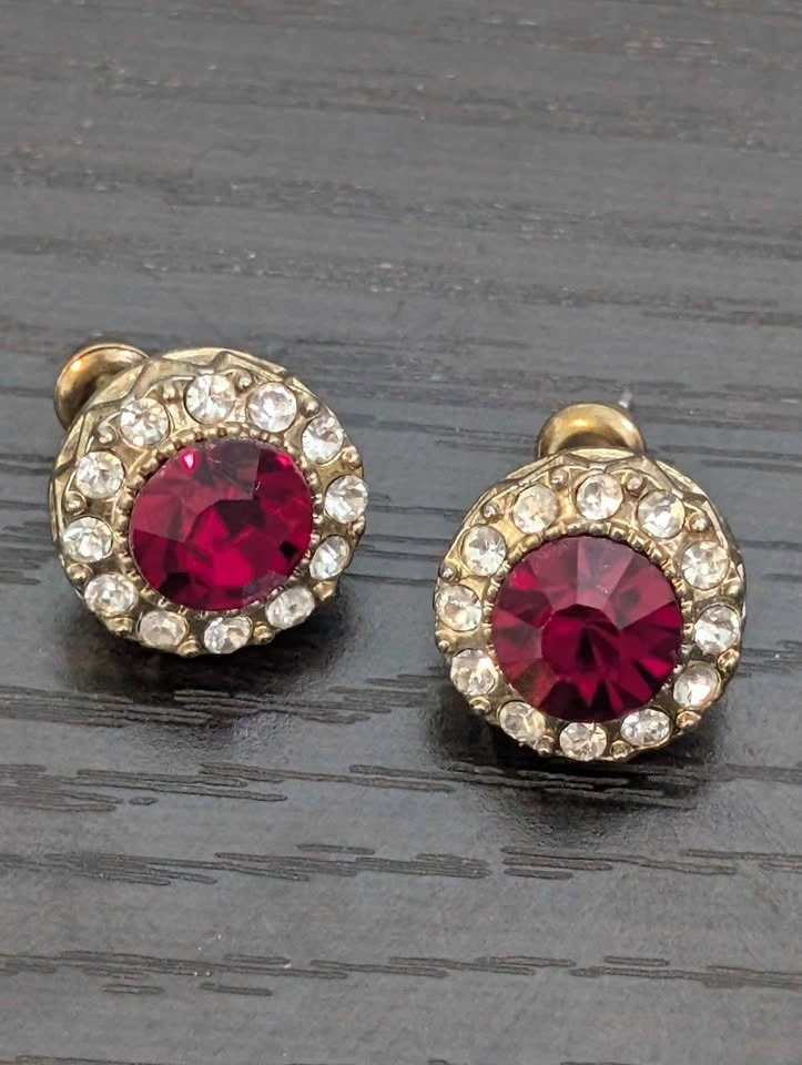 Ruby gem & diamond earrings from Joe Fresh, purchased several years ago. This style is likely discontinued. I've only worn them about 2 or 3 times and don't reach for them anymore. Please have a look at my other listings. Pickup is near Yonge & Eglinton.