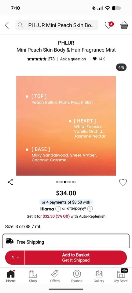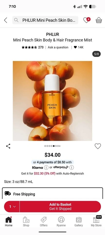 PHLUR Peach Skin Mini Fragrance Mist
