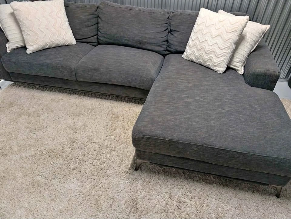 Spacious Urban Barn sectional is in excellent condition and ready for a new home. Smoke-free. Thoroughly steam cleaned. Deep, comfortable seating. Approx. 9'3" x 5'6". Clean, well cared for, and a great statement piece for a living room. Pickup in Sherwood Park. Message us to come take a look or ask any questions.
