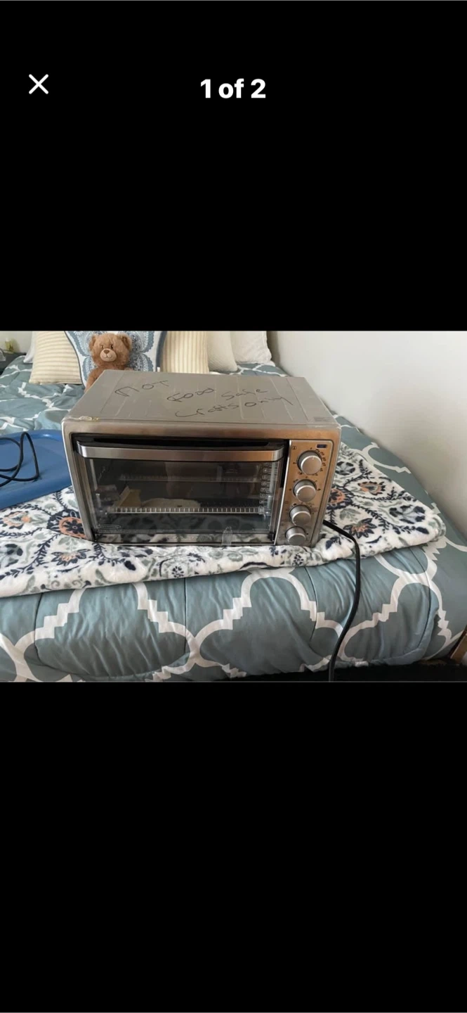 This is a Black and Decker toaster oven. It's labelled 'Not food safe, crafts only'. This would be useful for heating up materials for crafts or other non-food related projects. It has multiple dial controls.