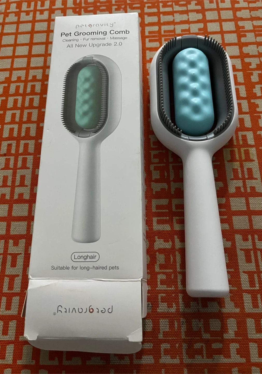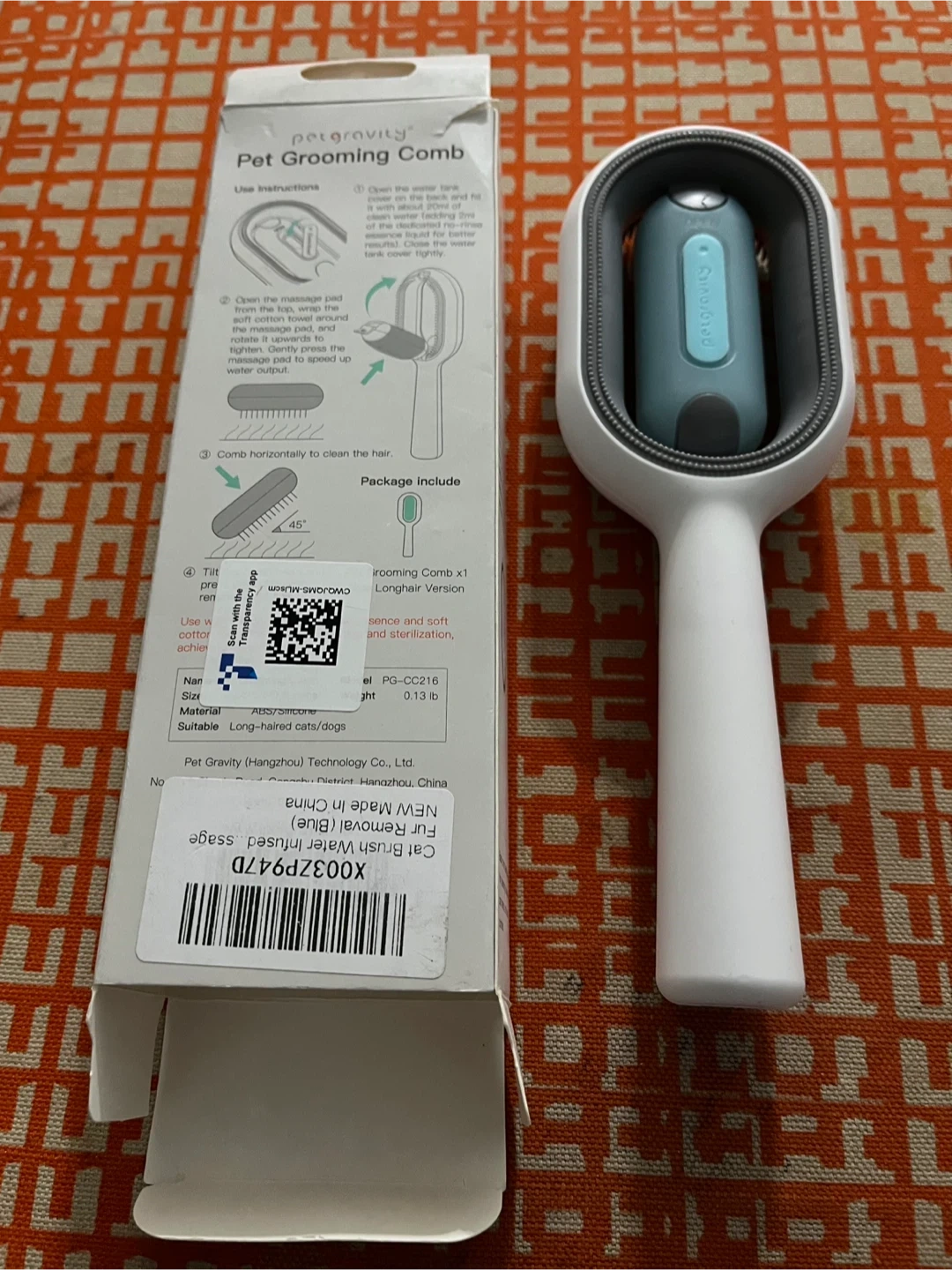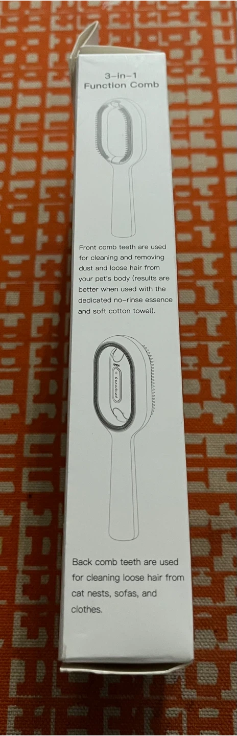 This 3-in-1 pet grooming comb is designed for cleaning, fur removal, and massage. It features continuous water output without flying hair and a soft silicone for added comfort. The no-rinse soft towel is easy to replace. Suitable for long-haired pets.