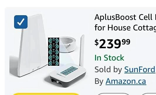 Buy & SellCell Phone Booster for House Cottage with Smart LCD DisplayCell Phone Booster for House Cottage with Smart LCD Display$150AplusBoost Cell Phone Booster for House Cottage with Smart LCD Display. Boosts 4G LTE & 5G Data up to 5,000 Sq Ft. ISED Approved.WHERE TO MEETCheck LocationView MapSELLERverifiedShirinBrock Ridge22915 reviews0 chats·0 favorites·7 viewsSEND CHAT TO SELLERHi Shirin! I’m interested in your listing.Hi Shirin! I’m interested in your listing.Get the Karrot app to chatSign In to chat