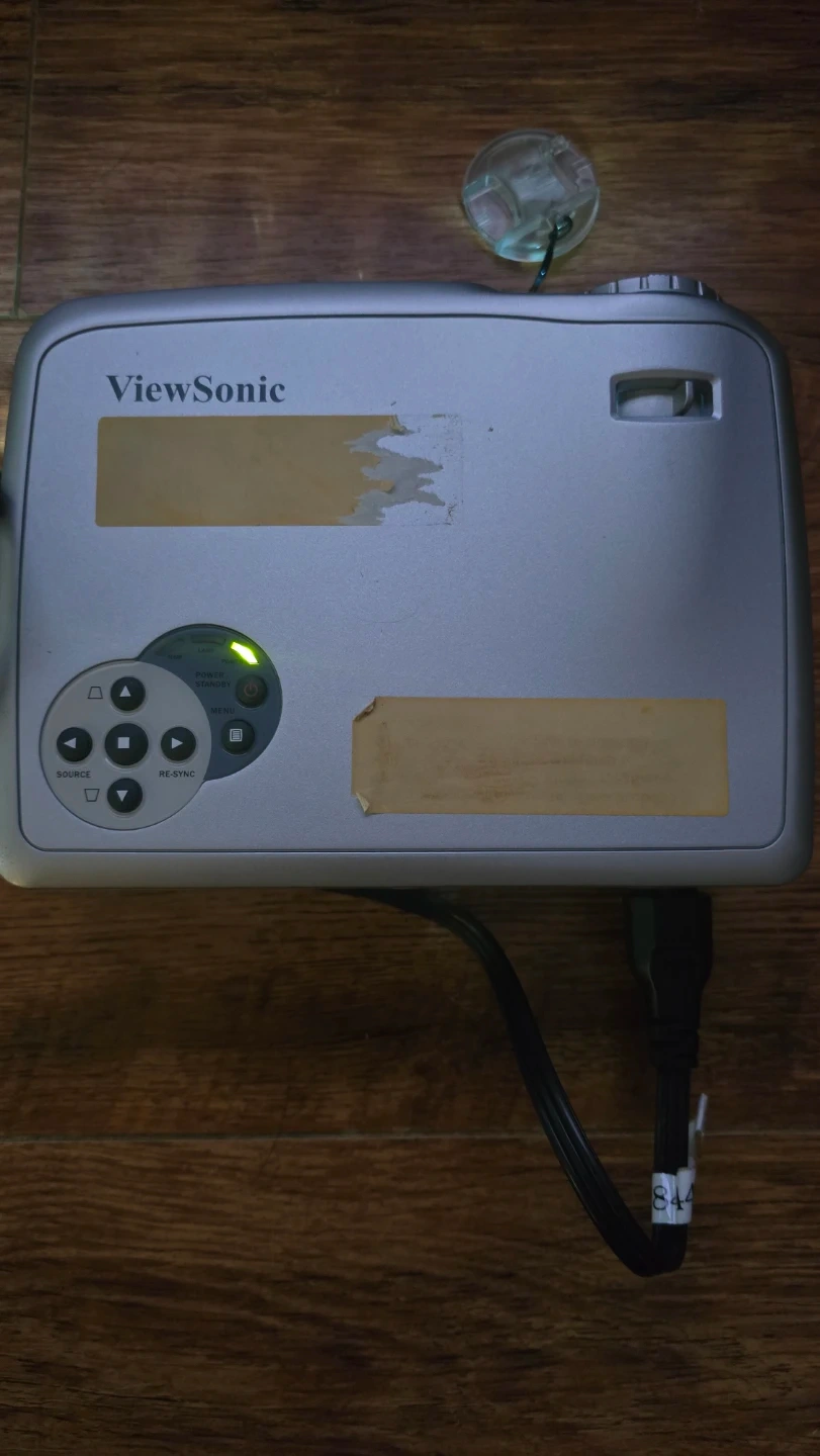 This is a ViewSonic projector, great for presentations or home movie nights. It comes with a black carrying case for easy transport and storage. This projector is silver and ready for use!