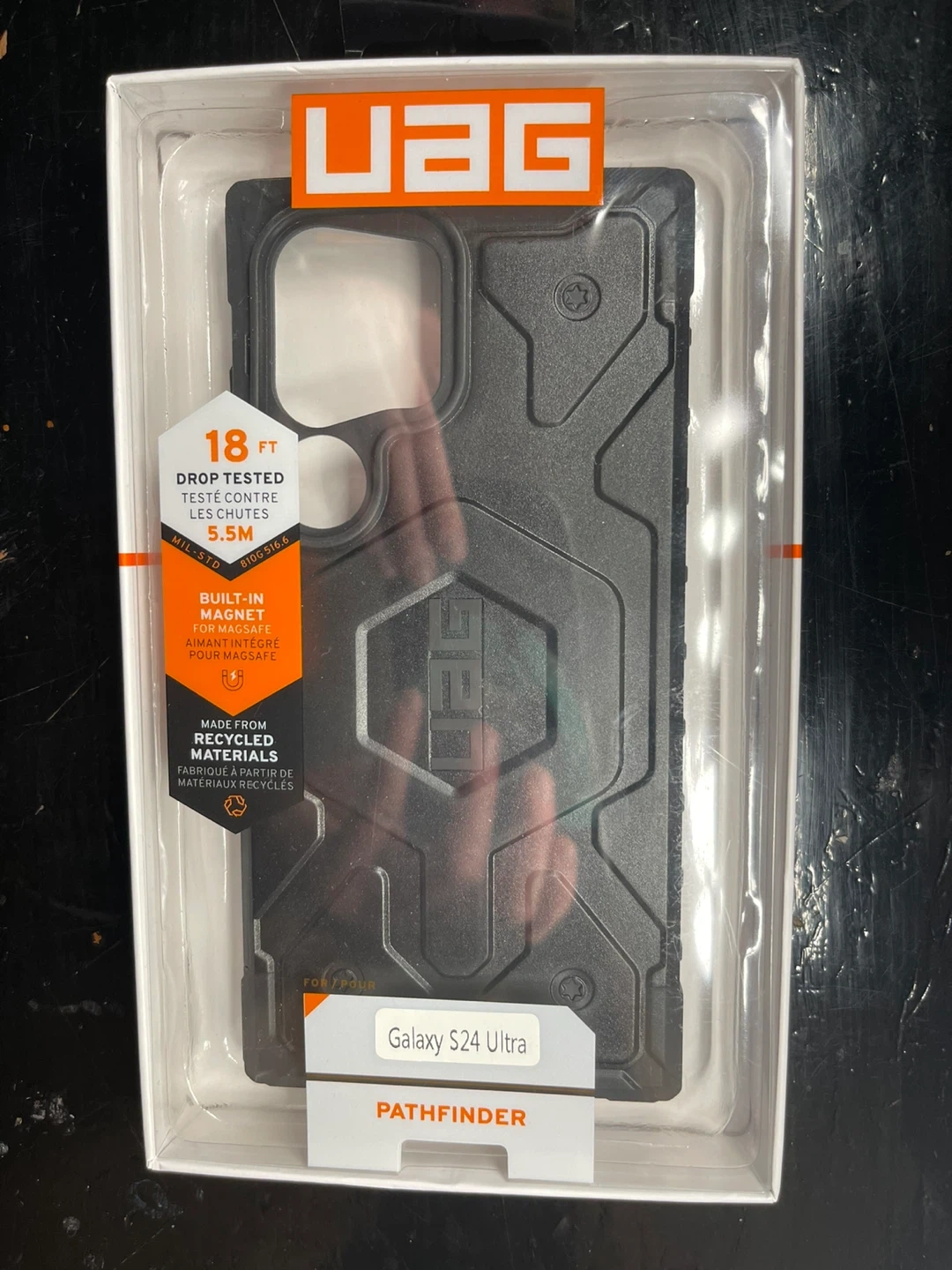This UAG Pathfinder case is designed for the Samsung Galaxy S24 Ultra. It's built with a featherlight composite construction and features enhanced corner protection. Made from 50% recycled materials!