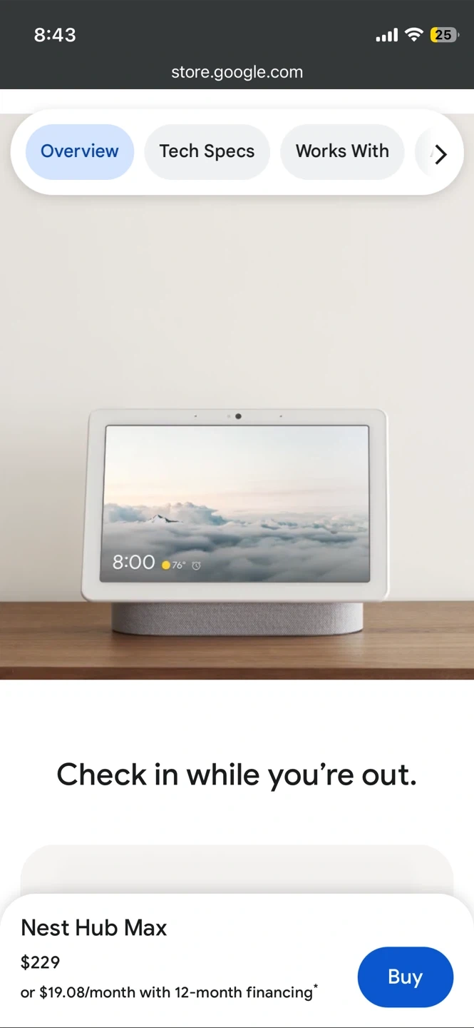 This is a Google Nest Hub Max. It's a smart display with a 10-inch screen. Make video calls and get help from Google Assistant. You can also use it to check in with pets when you’re at work.