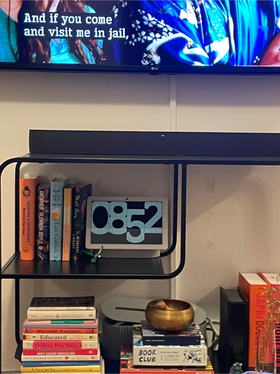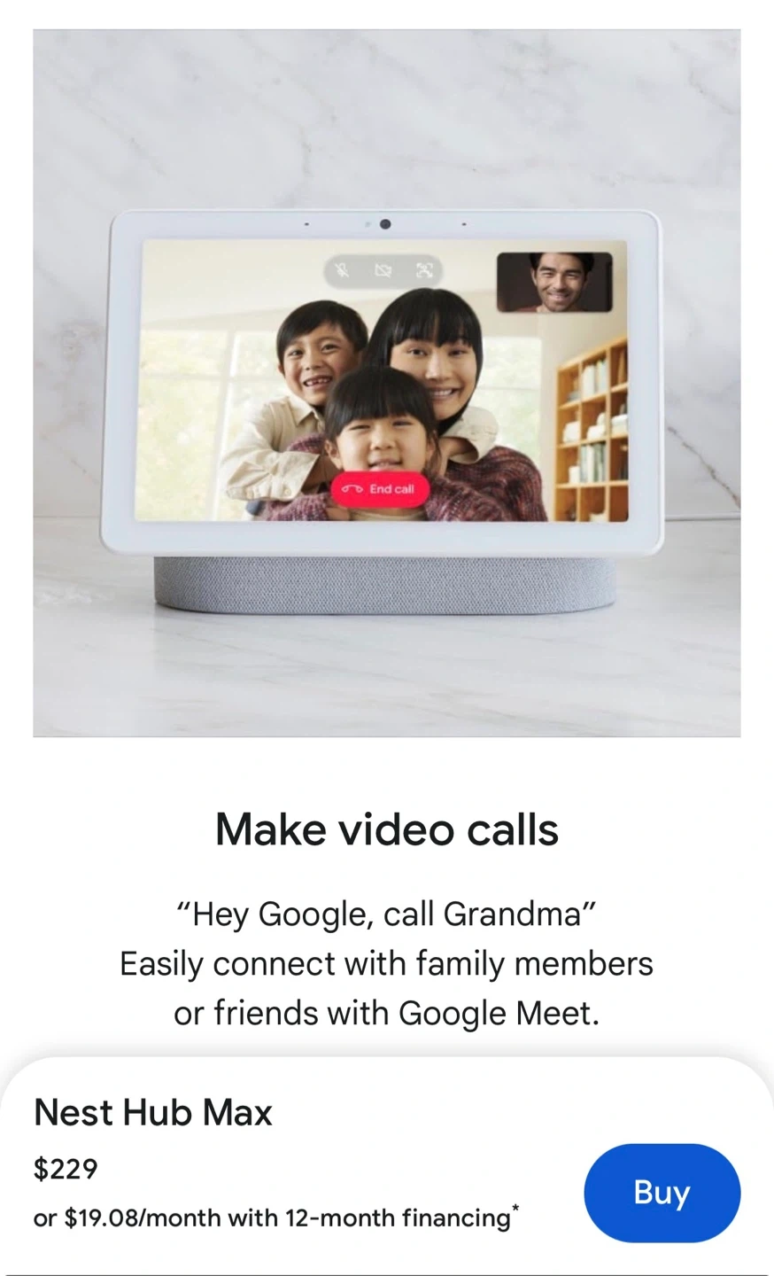 This is a Google Nest Hub Max. It's a smart display with a 10-inch screen. Make video calls and get help from Google Assistant. You can also use it to check in with pets when you’re at work.