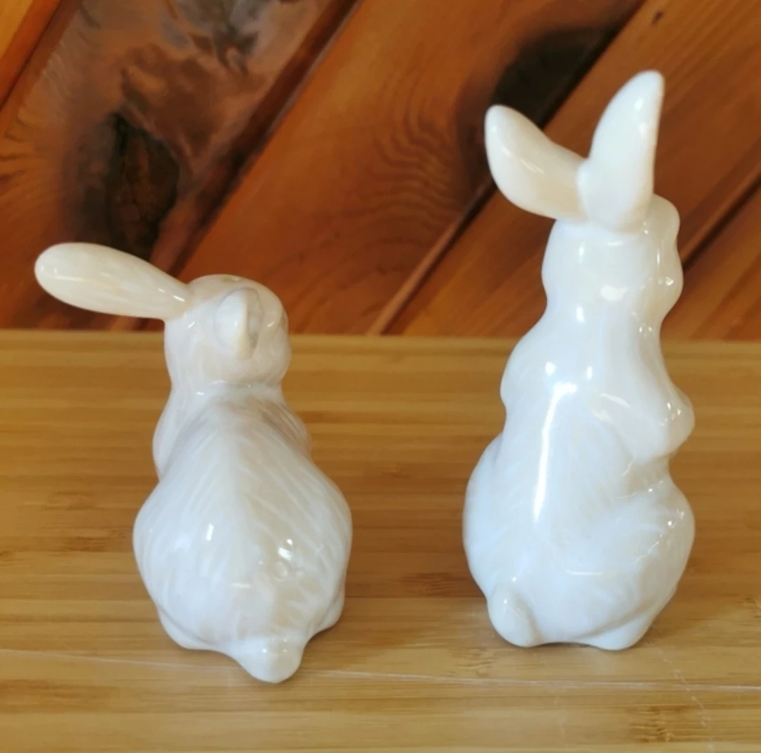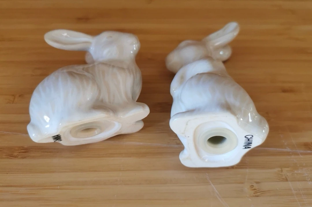 Beautiful Vintage Porcelain Bunny Salt and Pepper Shakers