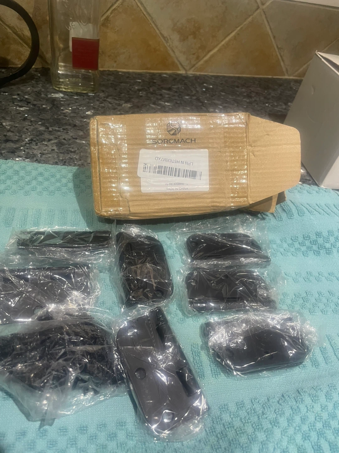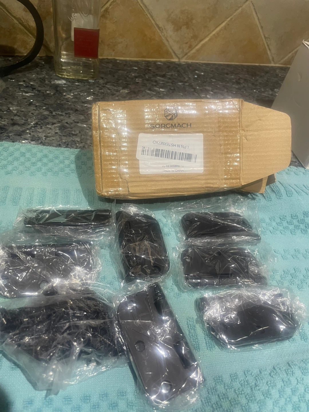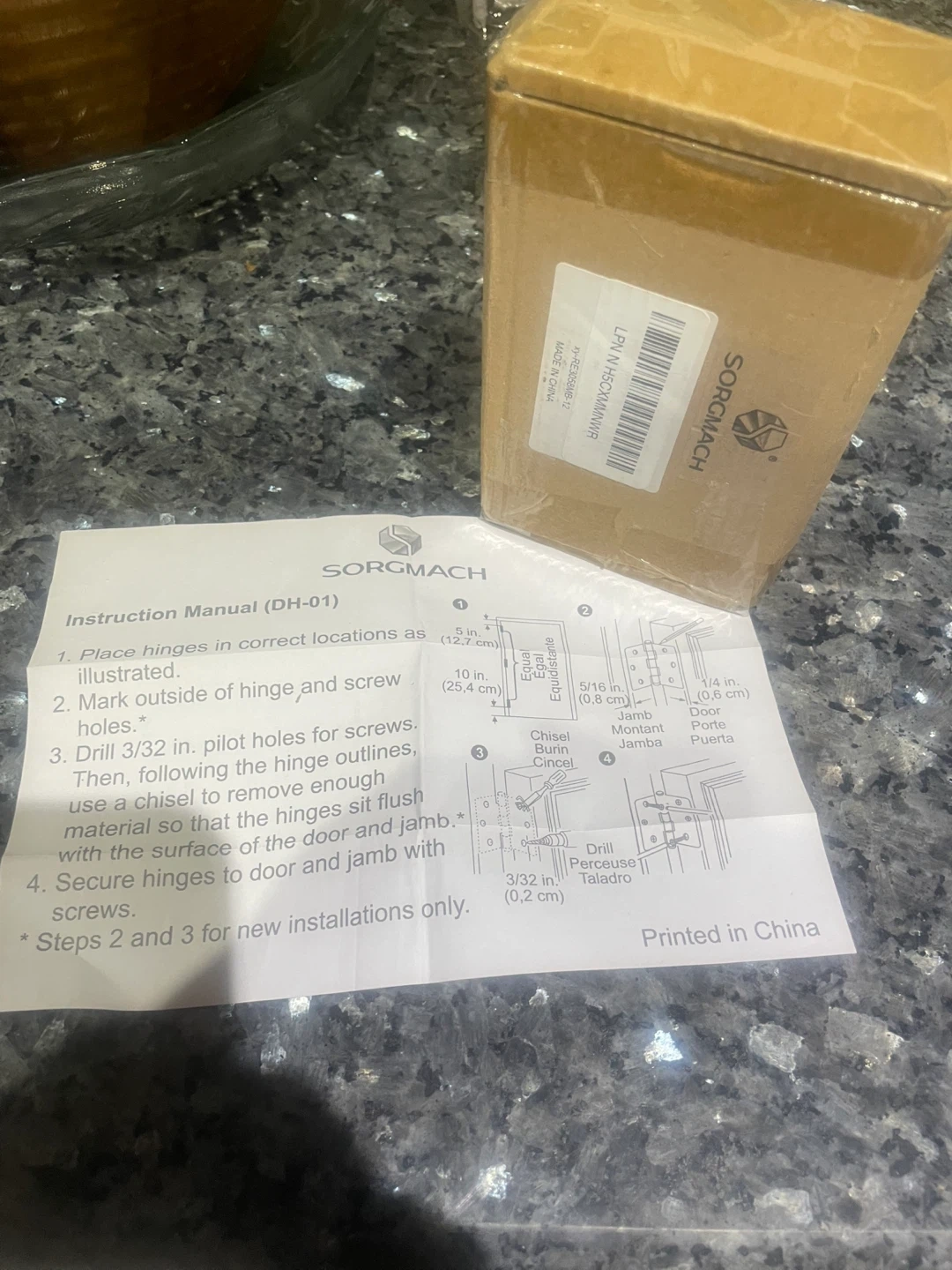 This is a set of 8 black door hinges. Includes an instruction manual for installation. Made in China.