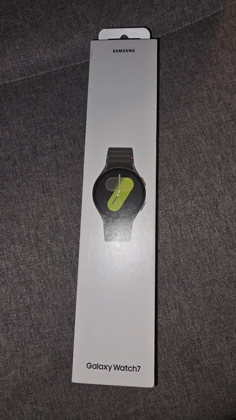 This is a Samsung Galaxy Watch 7. It features a sapphire crystal screen and LTE connectivity. The watch is in its original box.